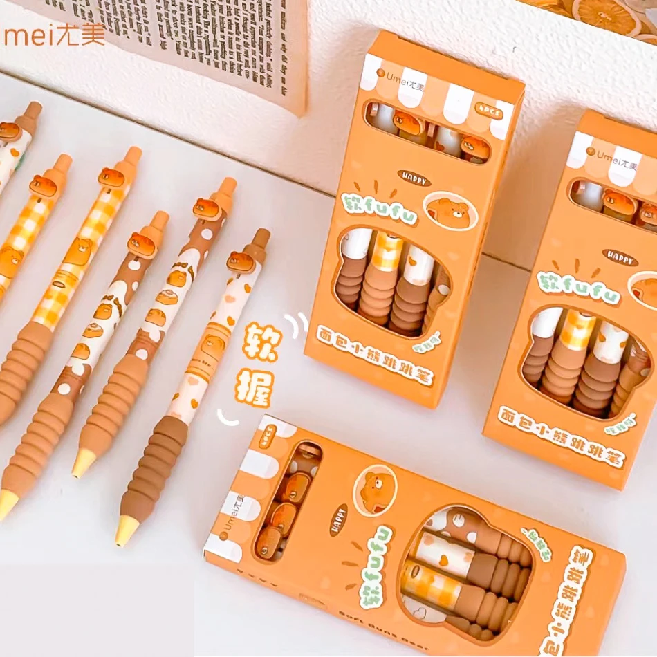 Kawaii Bread Bear penna Gel da 0.5MM per studenti penna da scrittura Soft Touch ricarica nera penna di cancelleria forniture scolastiche per ufficio nuovo