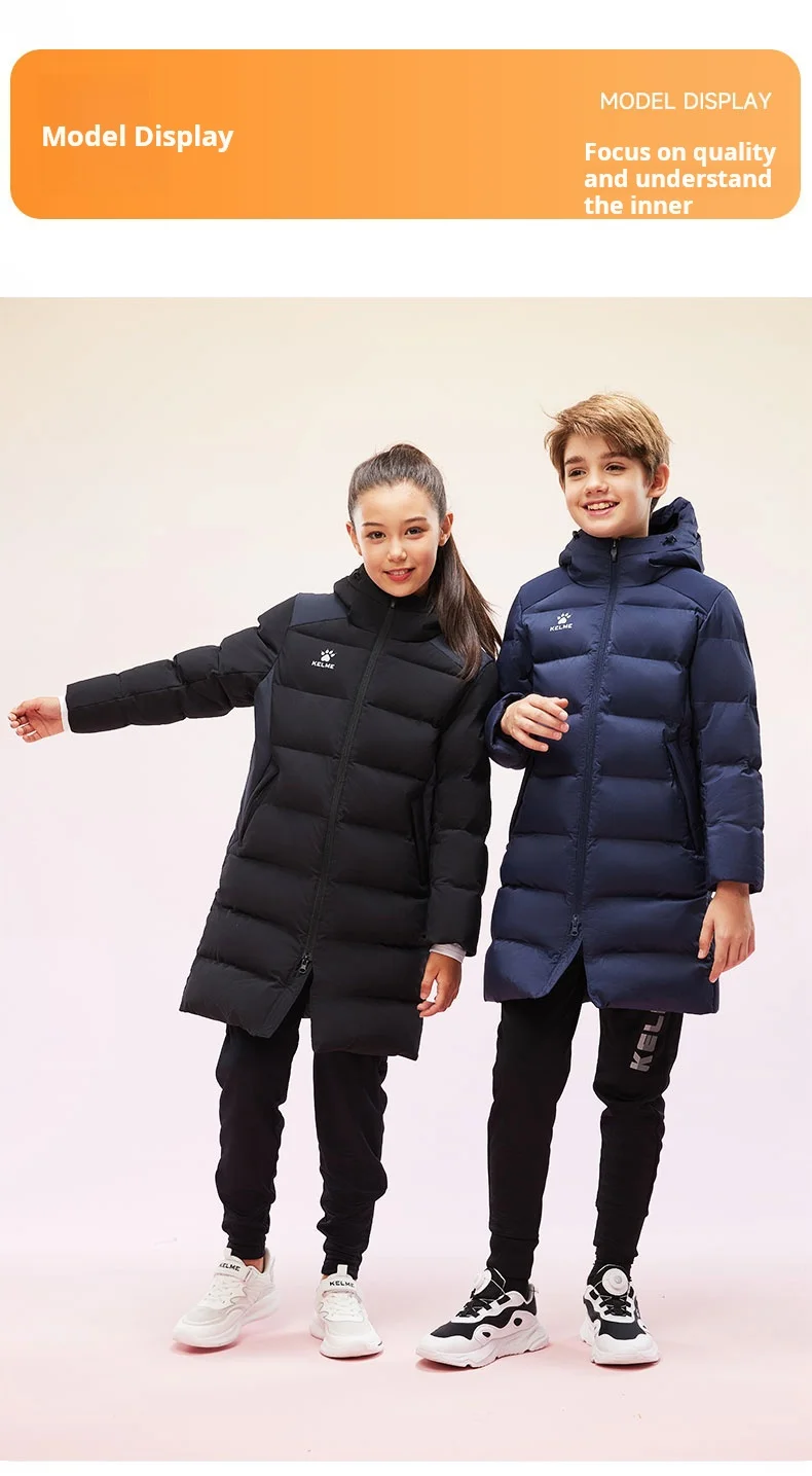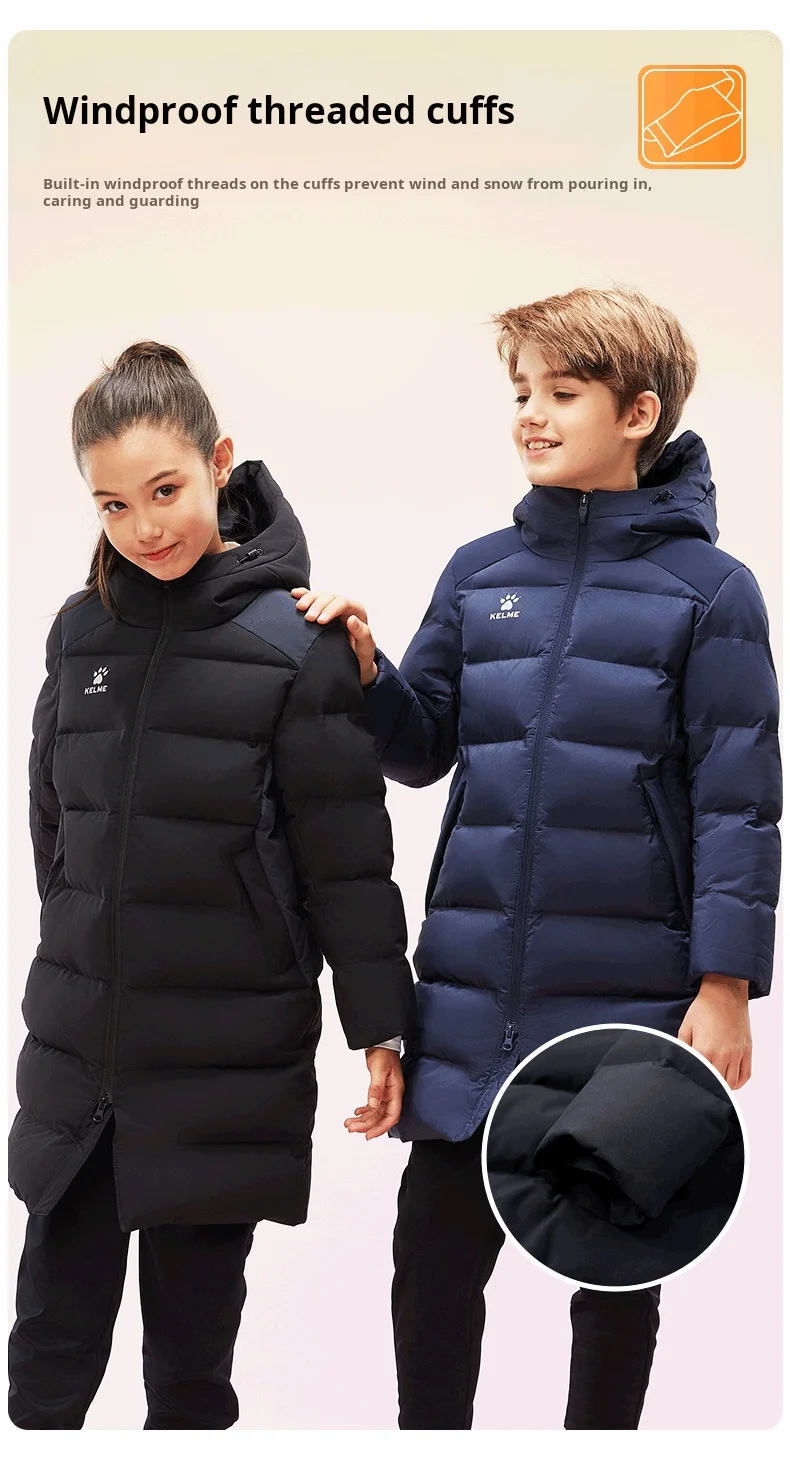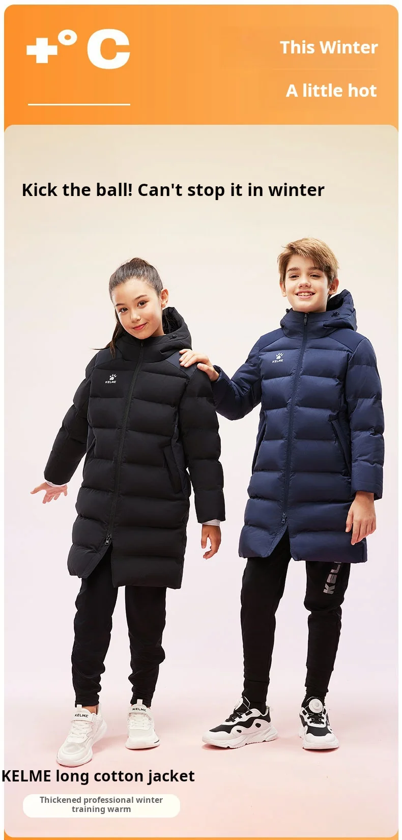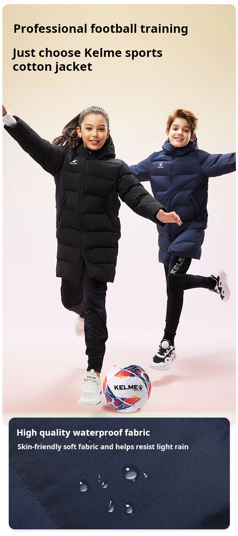 Kelme Abbigliamento lungo in cotone per bambini Giacca invernale da allenamento per calcio color block Giacca sportiva in cotone caldo antivento in cotone