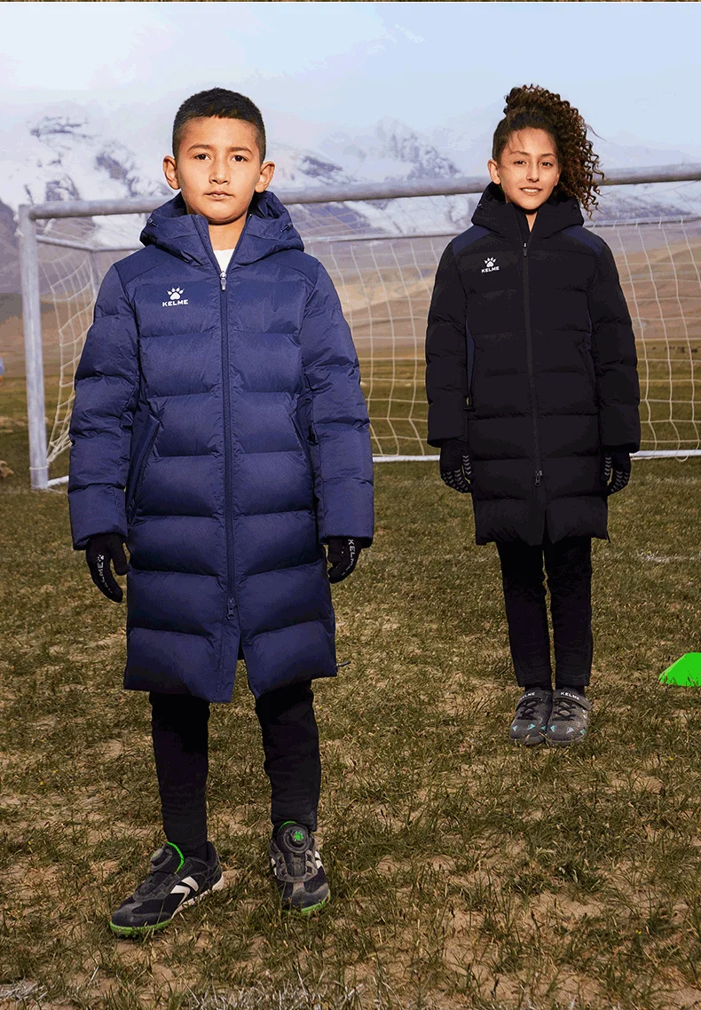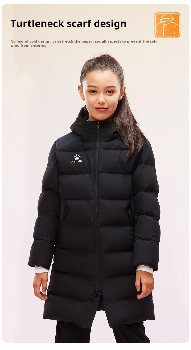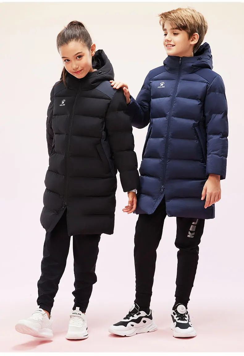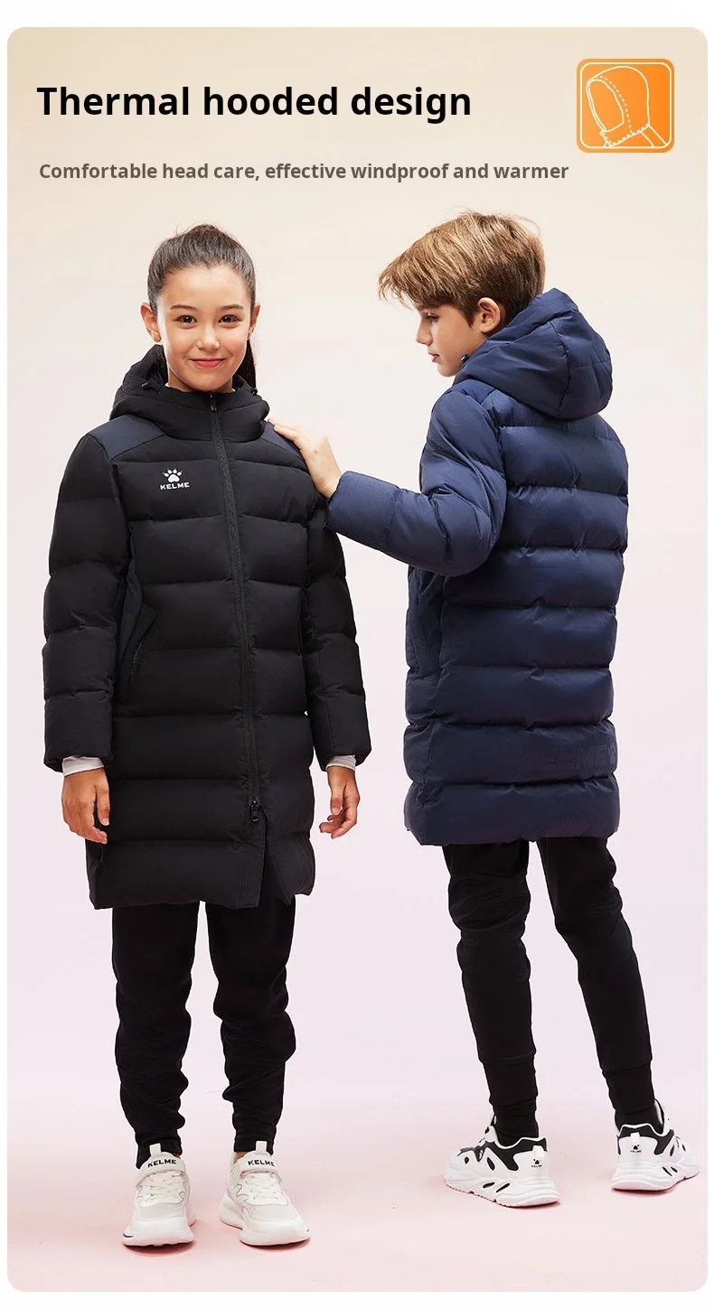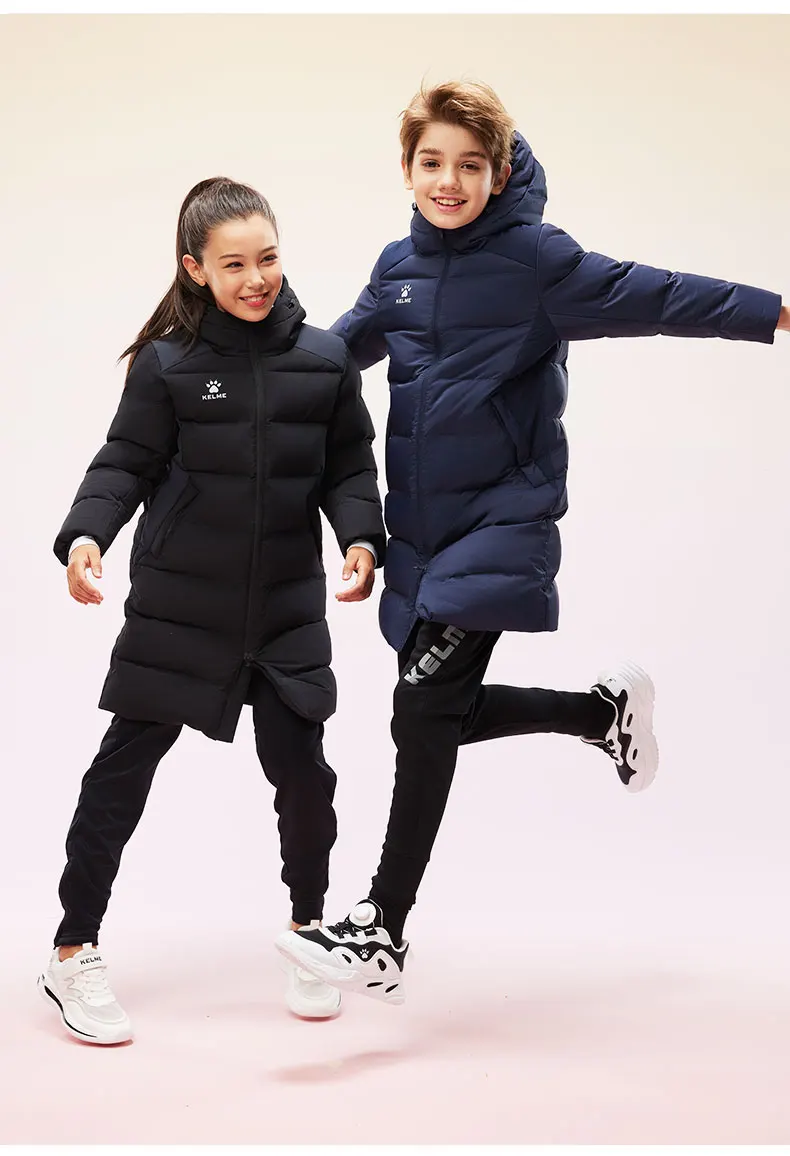 Kelme Abbigliamento lungo in cotone per bambini Giacca invernale da allenamento per calcio color block Giacca sportiva in cotone caldo antivento in cotone