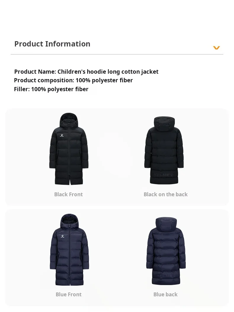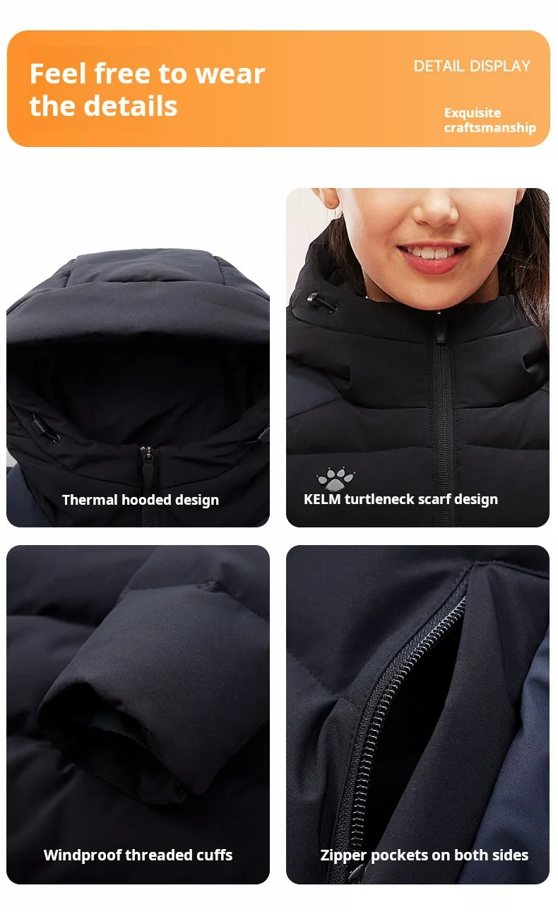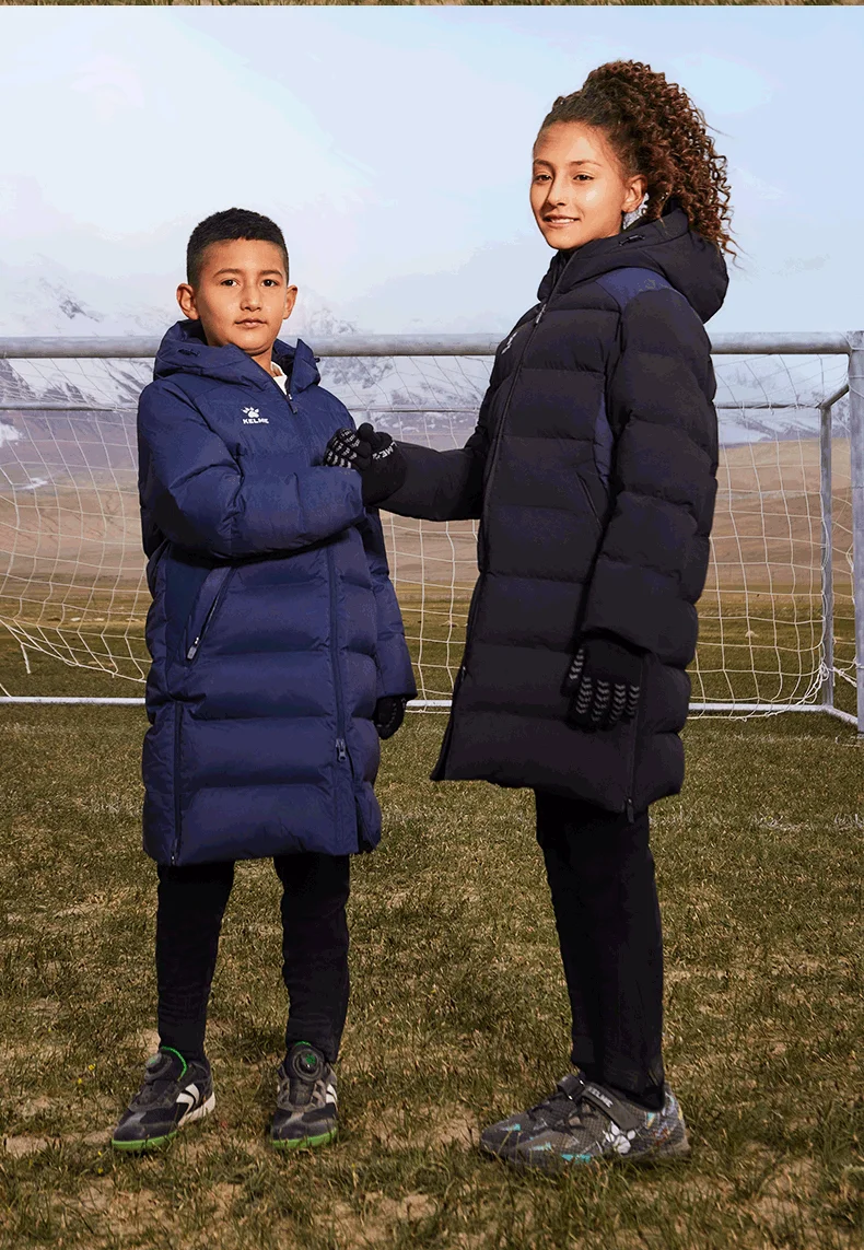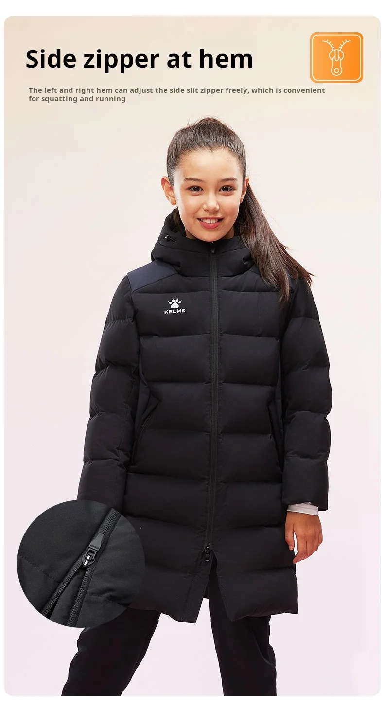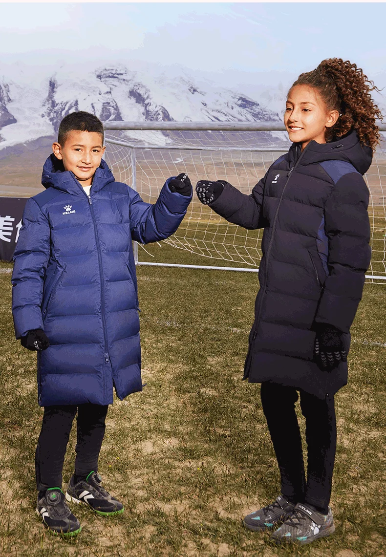 Kelme Abbigliamento lungo in cotone per bambini Giacca invernale da allenamento per calcio color block Giacca sportiva in cotone caldo antivento in cotone