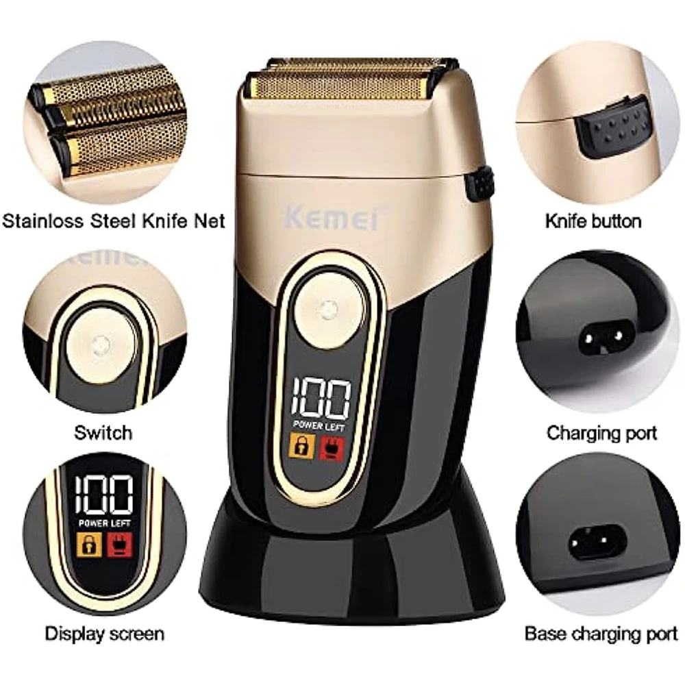 ♛Impermeabile: Il corpo è impermeabile e consente di utilizzare il rasoio elettrico si è bagnato o asciutto, anche nella doccia.Si adatta facilmente a schiuma o gel da barba per un’esperienza di rasatura più vicina.