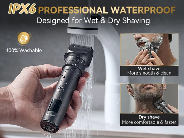 4.Design impermeabile al 100%, supporta l’impermeabilità IPX6, può rasare asciutto e bagnato.