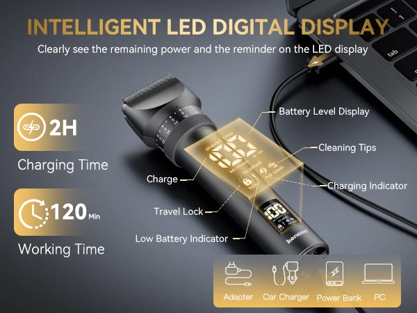 5.Display digitale LED intelligente, quindi puoi conoscere lo stato del trimmer a qualsiasi momento.