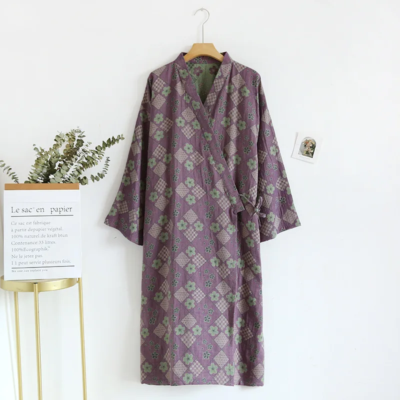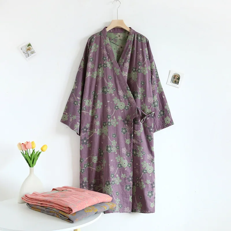 Kimono jacquard double face in cotone primavera/estate da donna, camicia da notte da donna, taglia ampia, comodo accappatoio per la casa