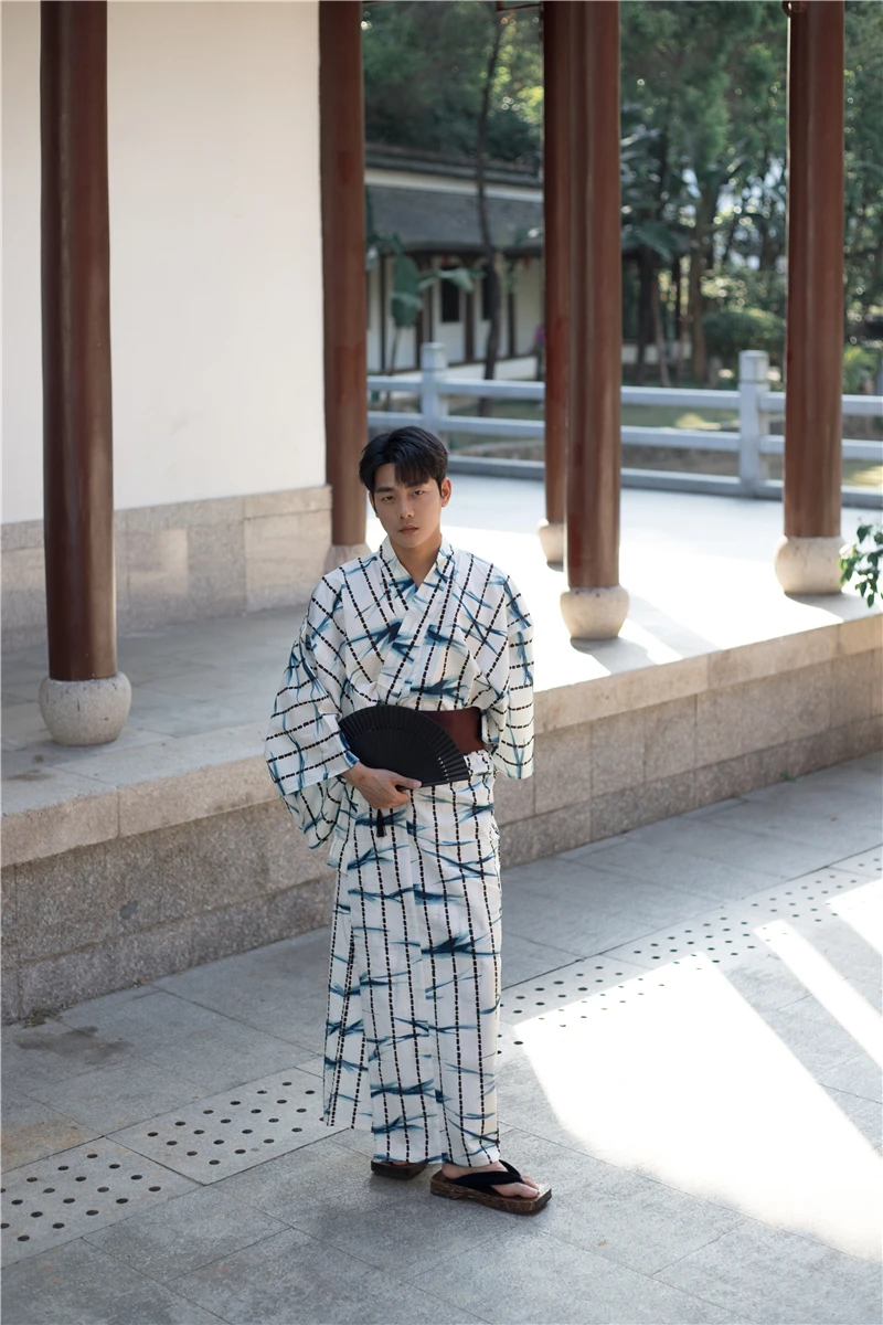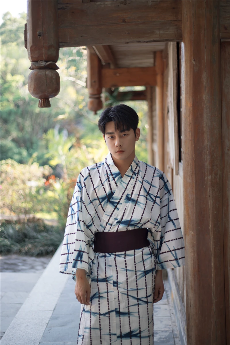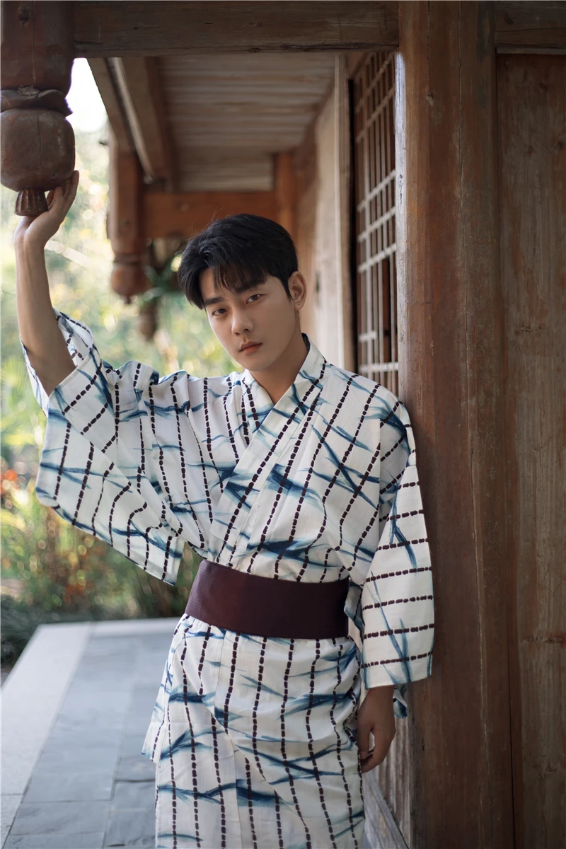 Kimono tradizionale da uomo giapponese con cintura Yukata Robe accappatoio in cotone formale servizio a casa abbigliamento estivo