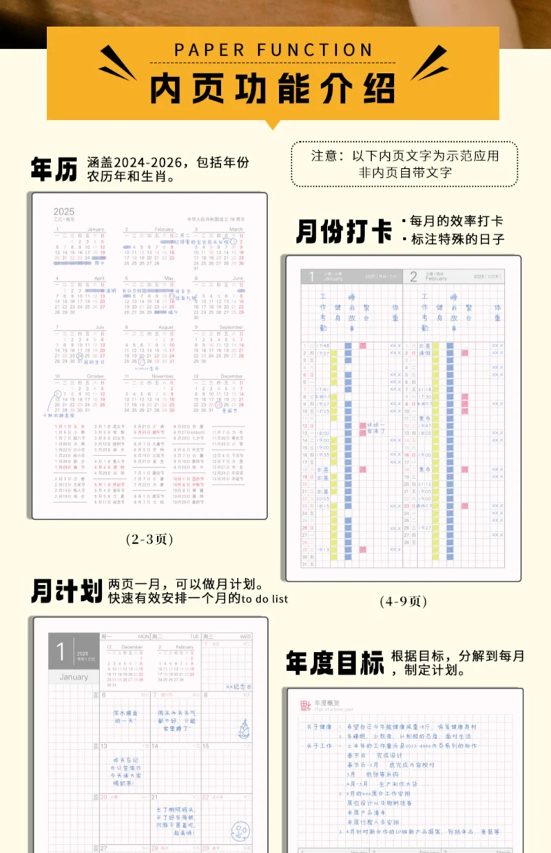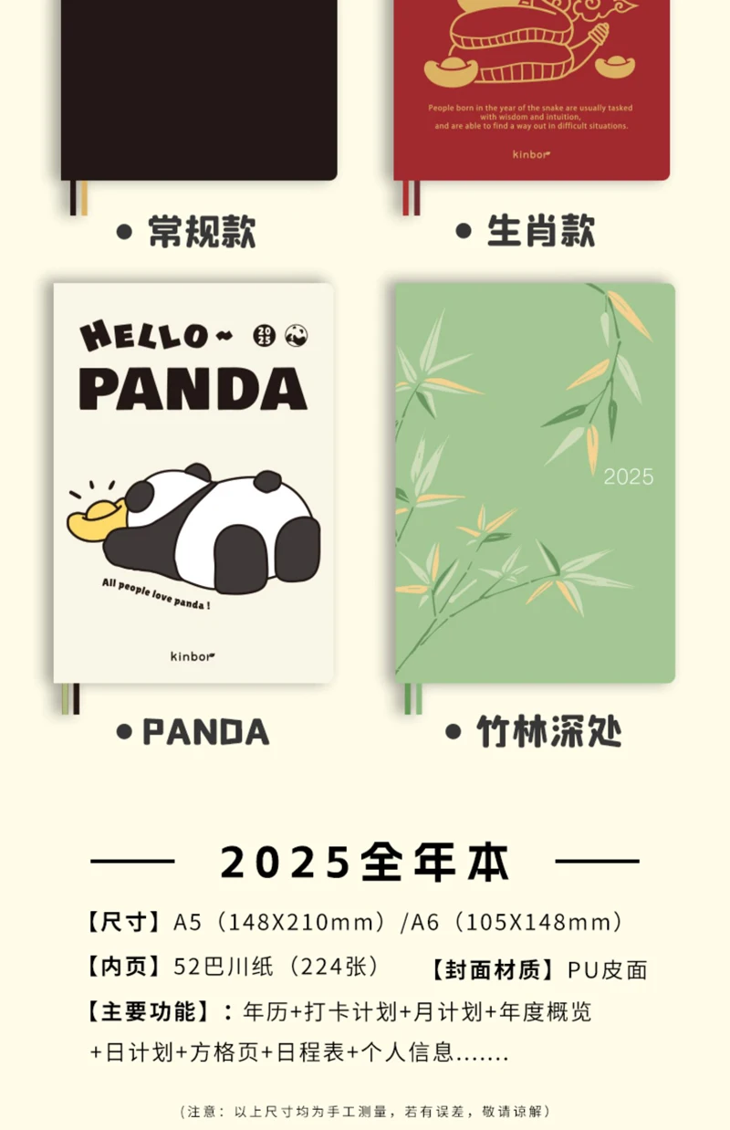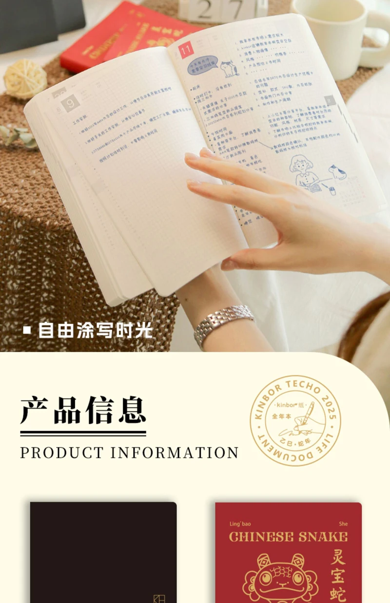 Kinbor 2025 annuale rosso nero classico diario notebook A5 Pocket Portale formato A6 calendario giornaliero agenda settimanale mensile