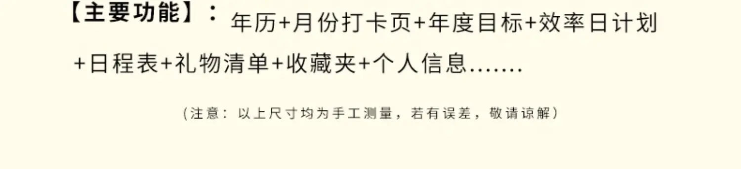 🔖Informazioni sulle pagine interne: calendario + pagina punzonata mensile + obiettivi annuali + piano giornaliero di efficienza + programma + elenco regalo + preferiti + informazioni personali…