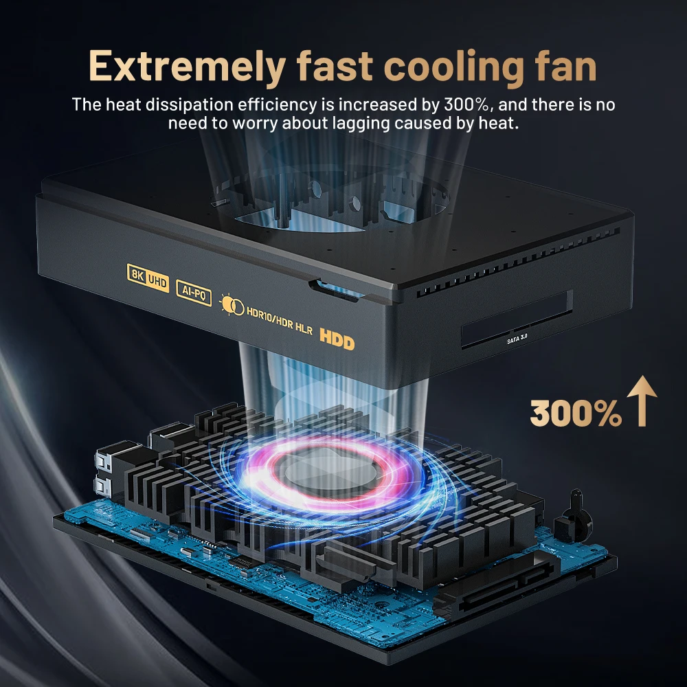 X5 Pro ha una ventola di raffreddamento ultraveloce incorporata, che migliora l’efficienza di dissipazione del calore entro 300%, impedisce le laghi causate dal calore durante l’uso.