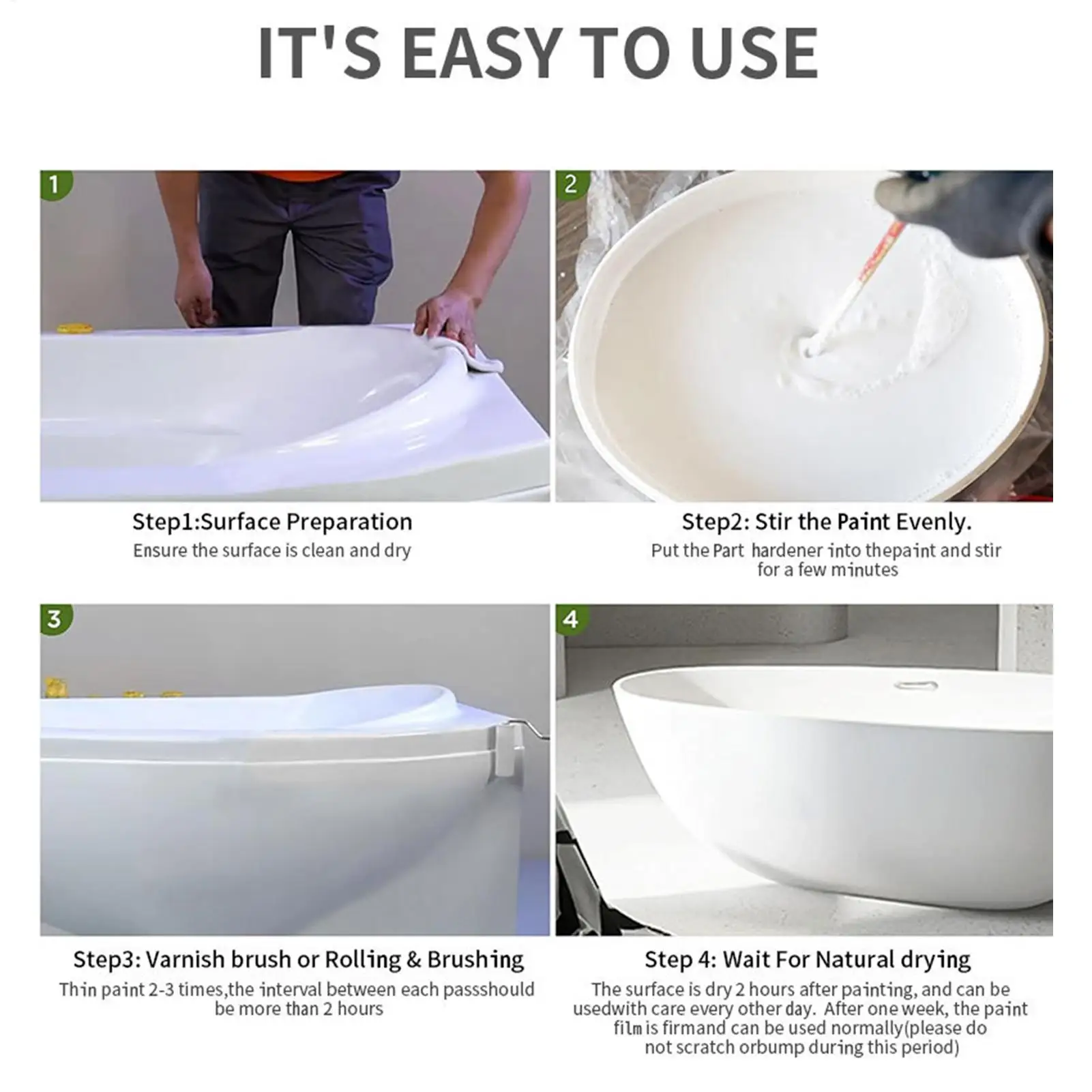 1. Applicazione senza sforzo: con il nostro kit di pittura per piastrelle da bagno, applica facilmente e asciugare rapidamente. La nostra vernice resistente all’uso quotidiano e mantiene l’aspetto, quindi puoi trasformare senza sforzo il bagno e goditi risultati di lunga durata