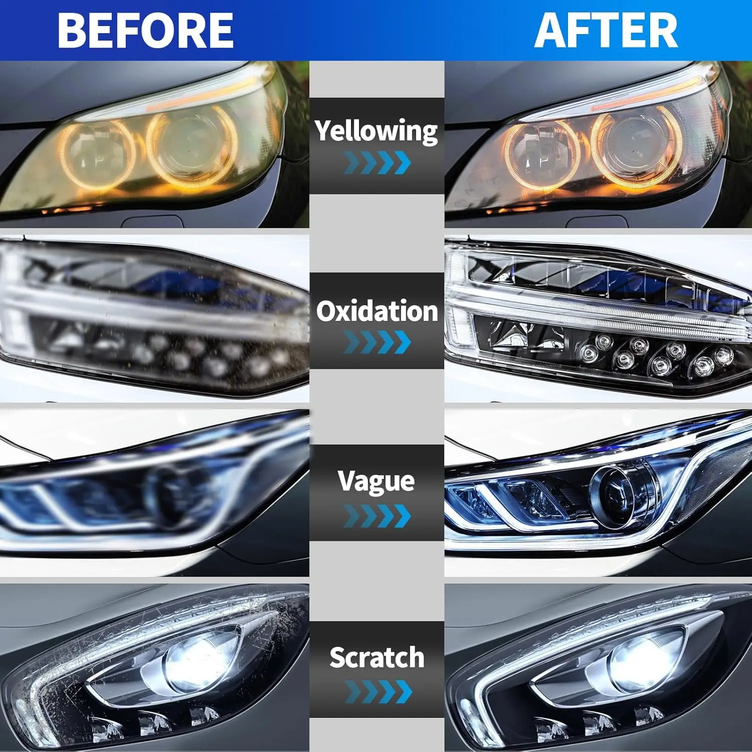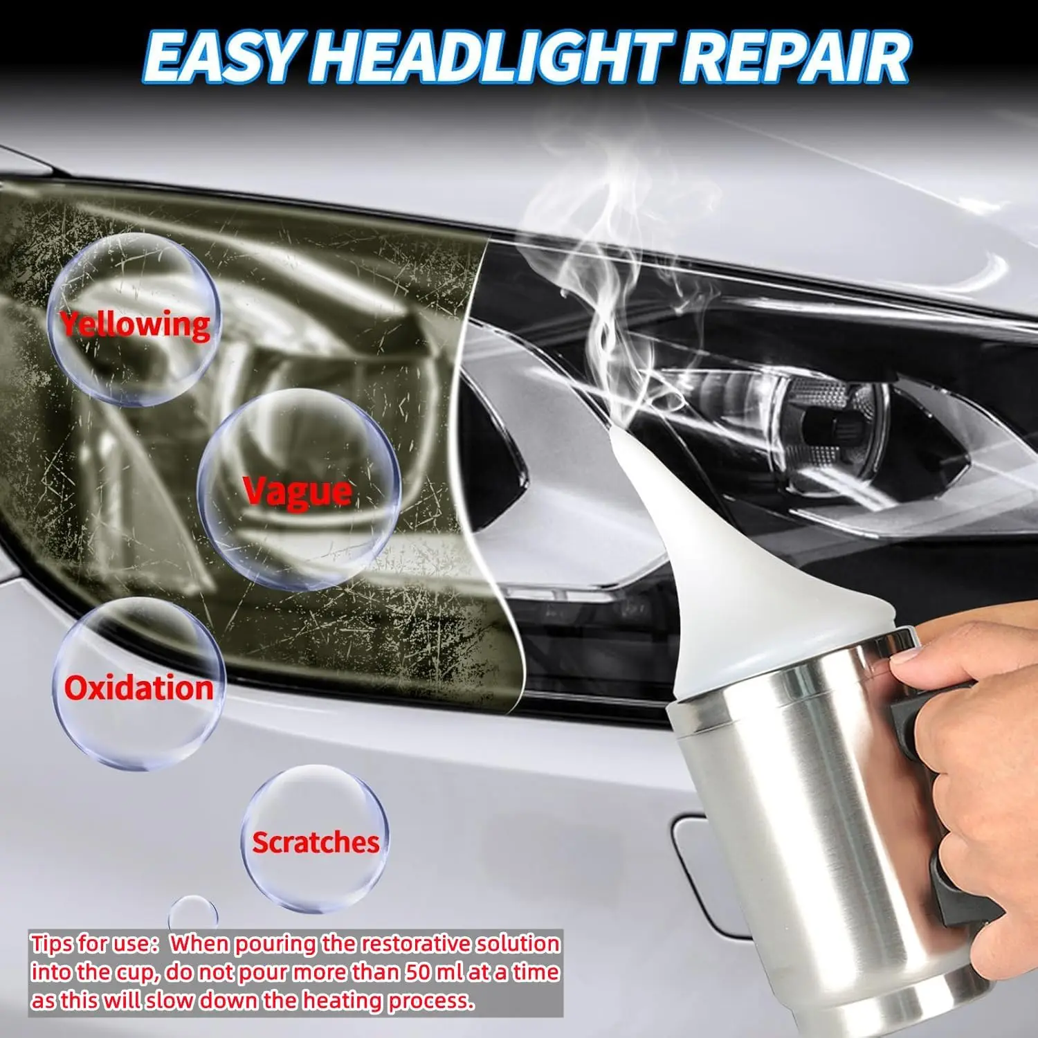 -Eliminare efficacemente i graffi dei fari dell’auto e risolve l’ingiallimento, sfocare, l’ossidazione e altri problemi.