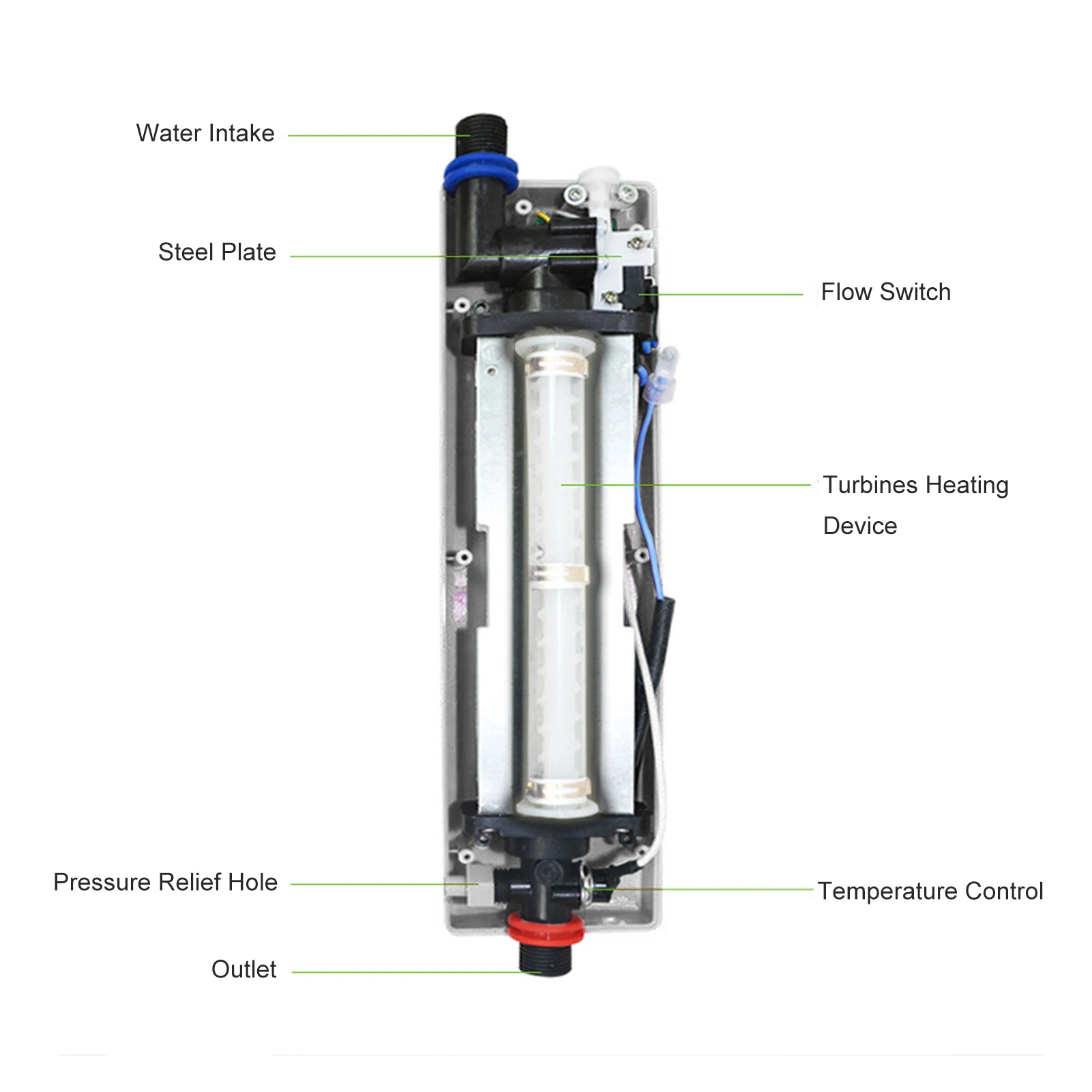 Kit tubo flessibile per soffione doccia con scaldabagno istantaneo elettrico senza serbatoio da 3000 W Fornitura per il bagno Accessorio per il bagno Riscaldatore istantaneo