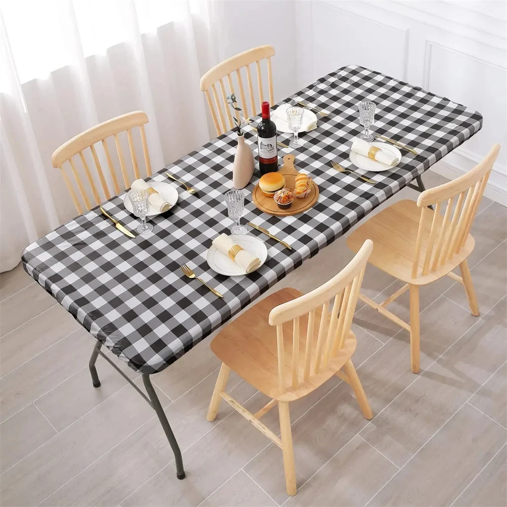 Kitinjoy copritavolo rettangolare copritavolo impermeabile elastico tovaglia in vinile aderente per tovaglia da campeggio per feste a casa all’aperto