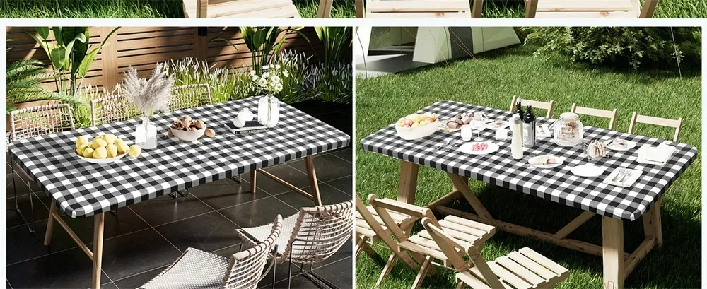 La tovaglia con design del bordo elastico consente alla copertura di adattarsi perfettamente al tavolo pieghevole rettangolare. La tovaglia aderente non si muove, sia che sia stata disegnata per caso o una raffica di vento soffia dentro per interferire con la tua piacevole cena.