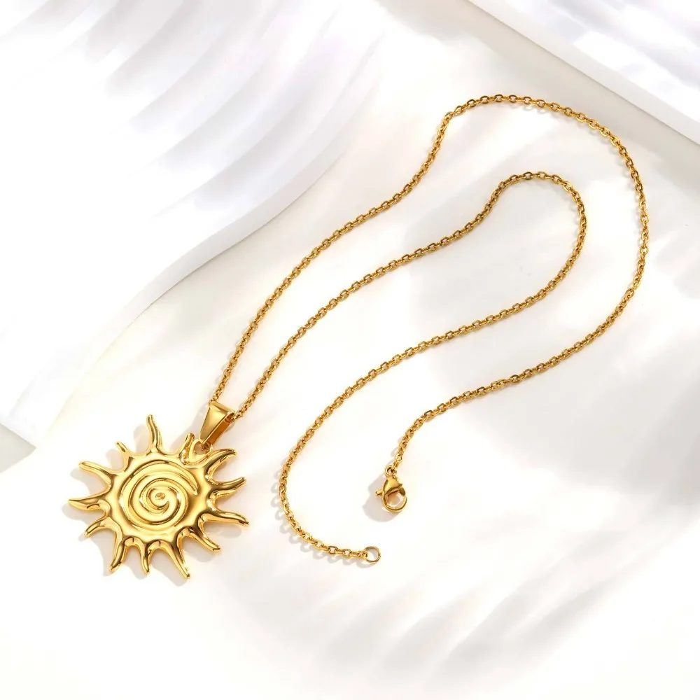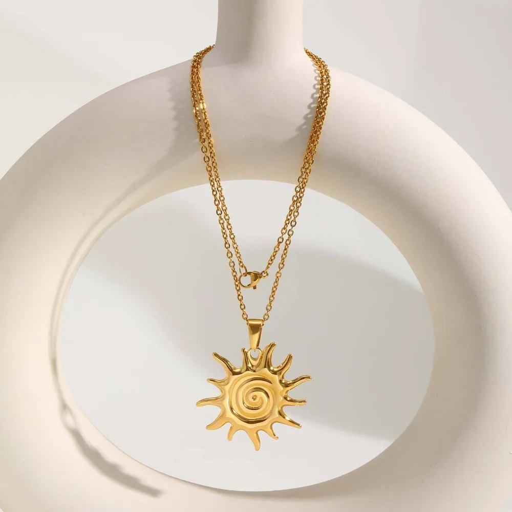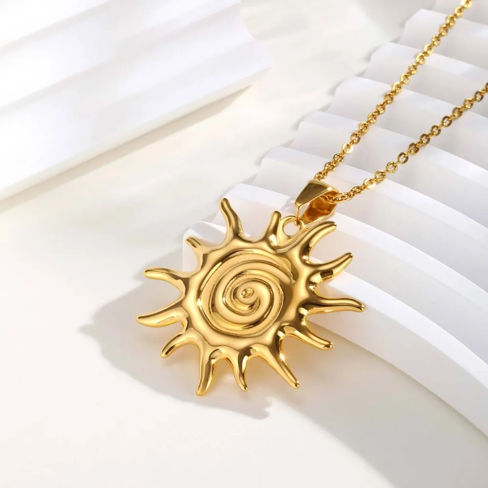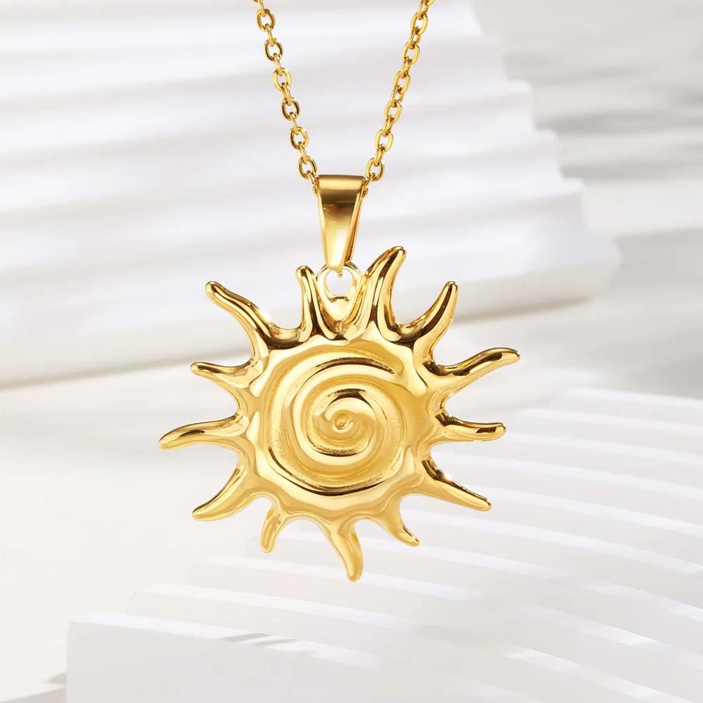 Kolmnsta Collane con ciondolo sole in acciaio inossidabile per donna Placcato in oro Boemia Minimalista Collana con catena clavicola Regali di gioielli