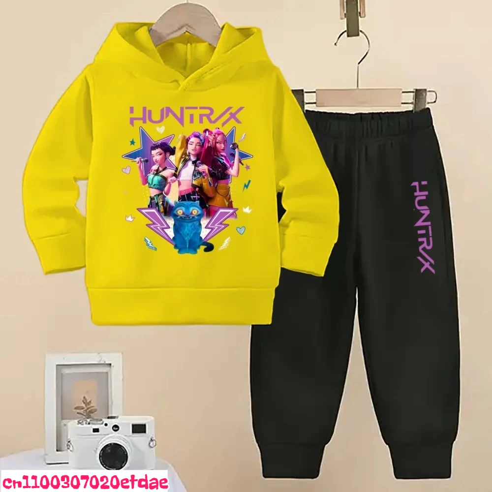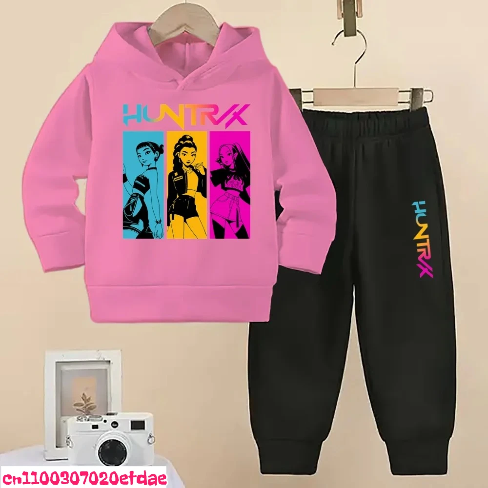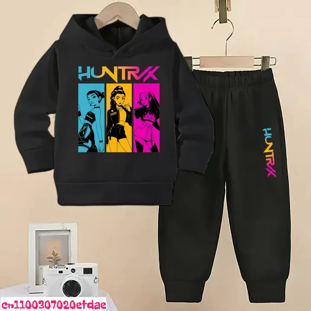 KPOP Demon Hunters Tuta sportiva per bambini Ragazzi e ragazze Moda Cartoon Felpa con cappuccio Tuta Primavera e autunno Moda Maglione Pantaloni sportivi