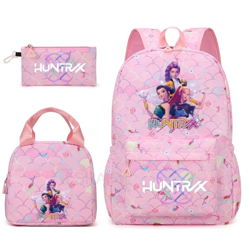 KPop Demon Hunters Zaino Zaino Borsa Astuccio Set di tre pezzi HUNTR/X Rumi Mira Zoey Derpy Zaini con stampa di cartoni animati