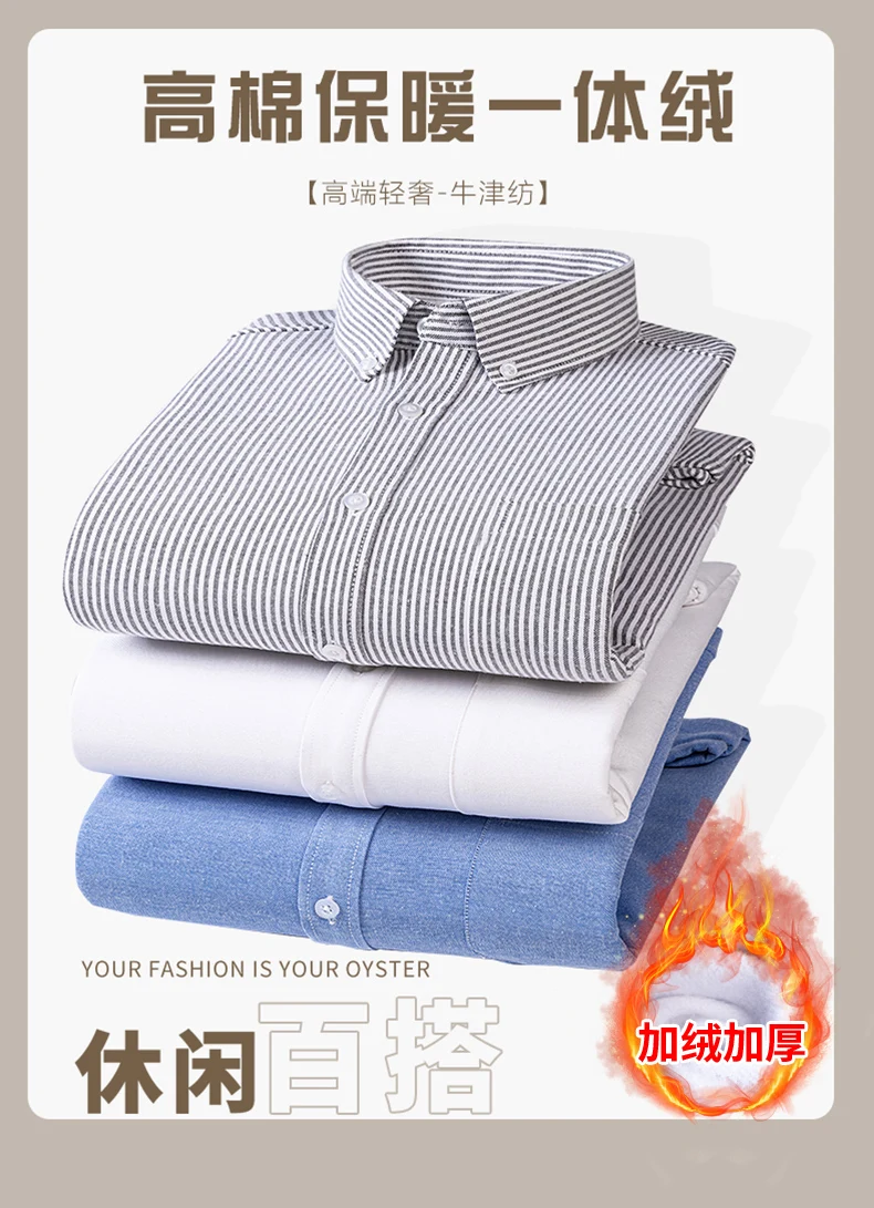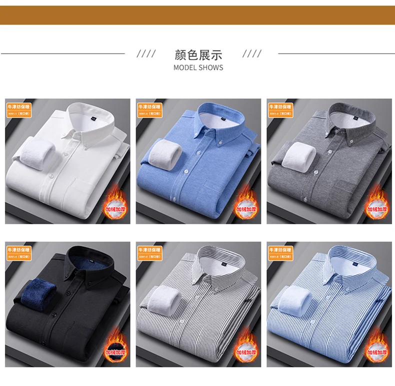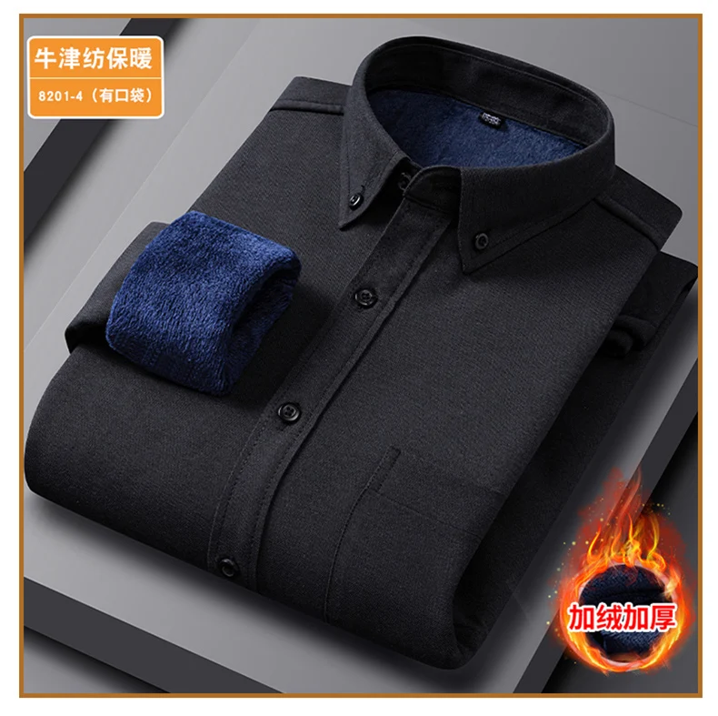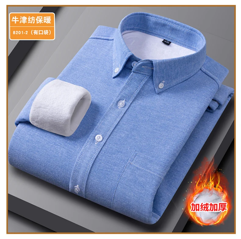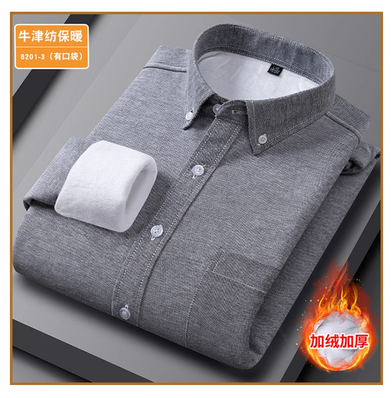 La nuova camicia Oxford a maniche lunghe da uomo con pile e tessuto ispessito è versatile e alla moda per l’autunno e l’inverno