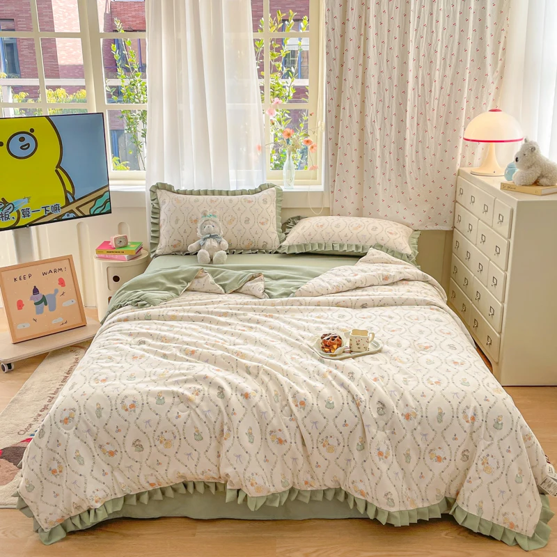 Questo trapunta estiva in garza a doppio strato di cartone animato è realizzata in tessuto di garza a doppio strato leggero e traspirante, che offre una esperienza morbida, comoda e fresca in tutto l’estate. Il design incorpora elementi simpatici e giocosi dei cartoni animati, riempie istantaneamente la tua camera da letto con la vitalità e il divertimento infantile.