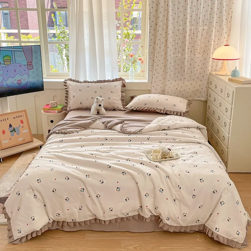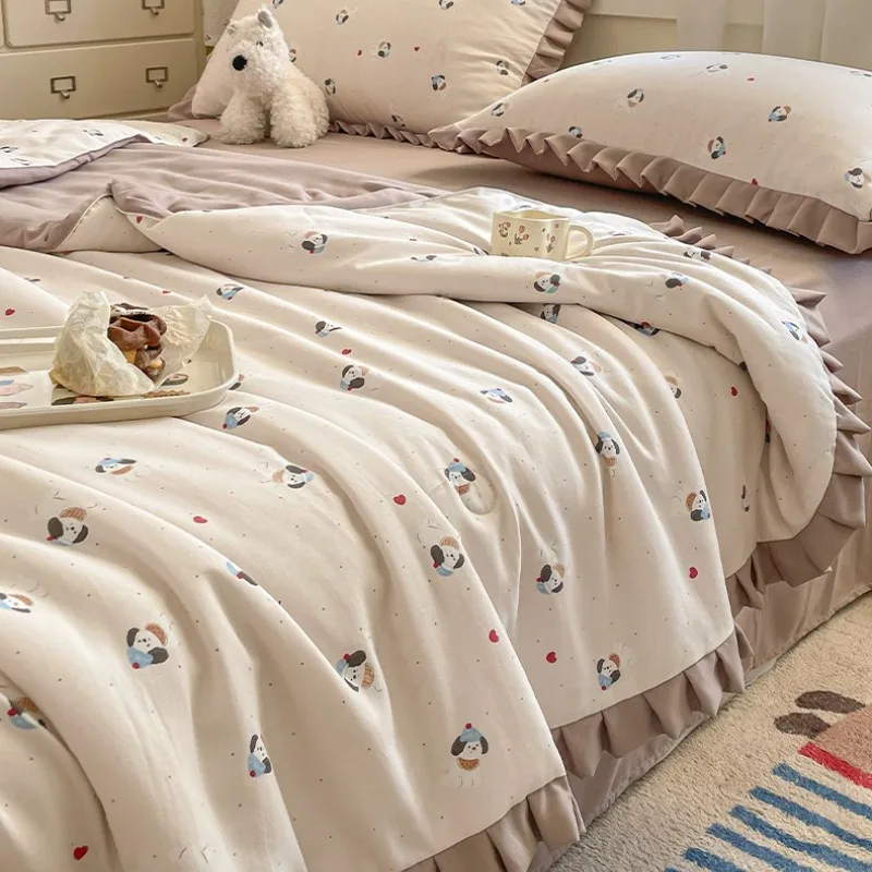 Questo trapunta estiva in garza a doppio strato di cartone animato è realizzata in tessuto di garza a doppio strato leggero e traspirante, che offre una esperienza morbida, comoda e fresca in tutto l’estate. Il design incorpora elementi simpatici e giocosi dei cartoni animati, riempie istantaneamente la tua camera da letto con la vitalità e il divertimento infantile.