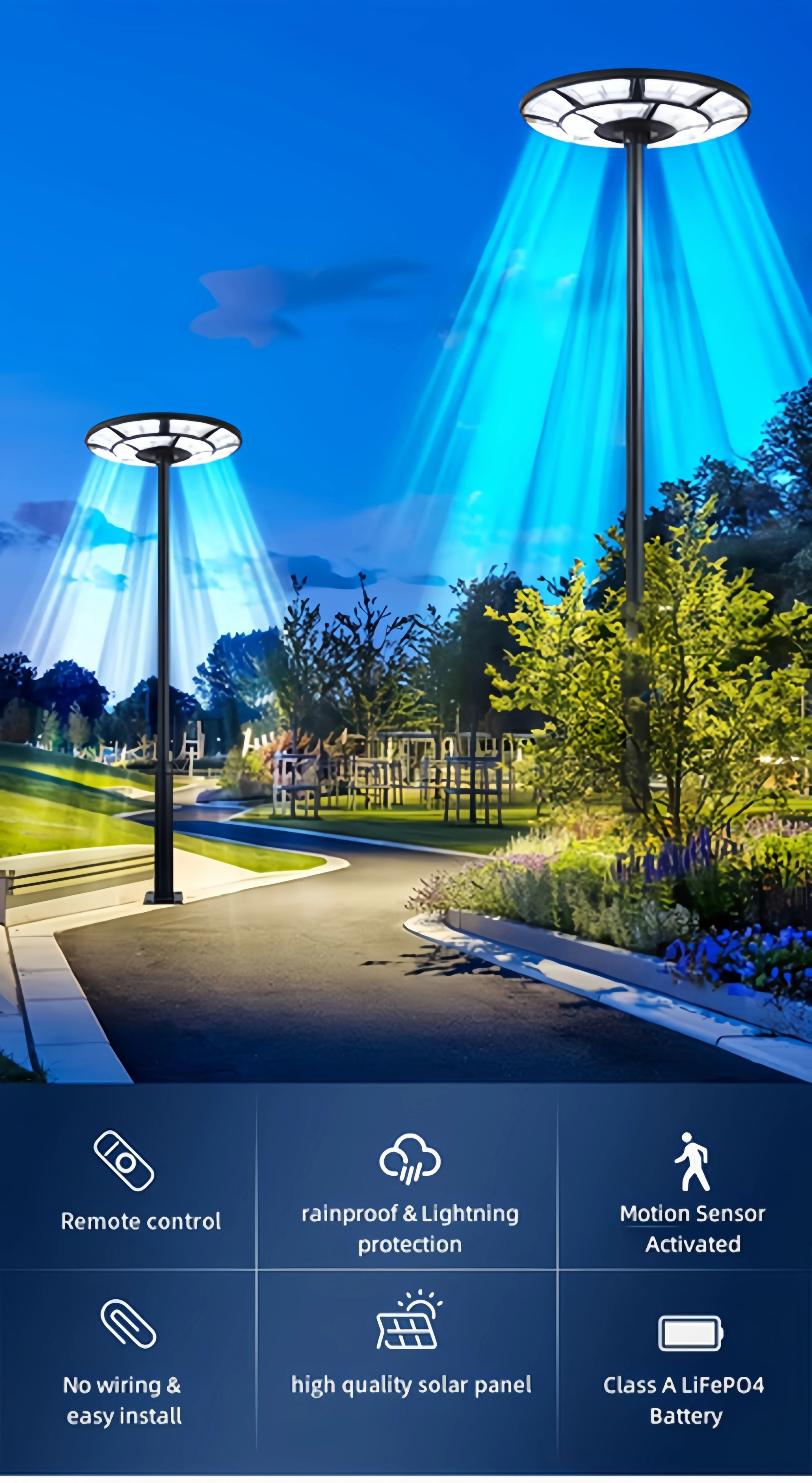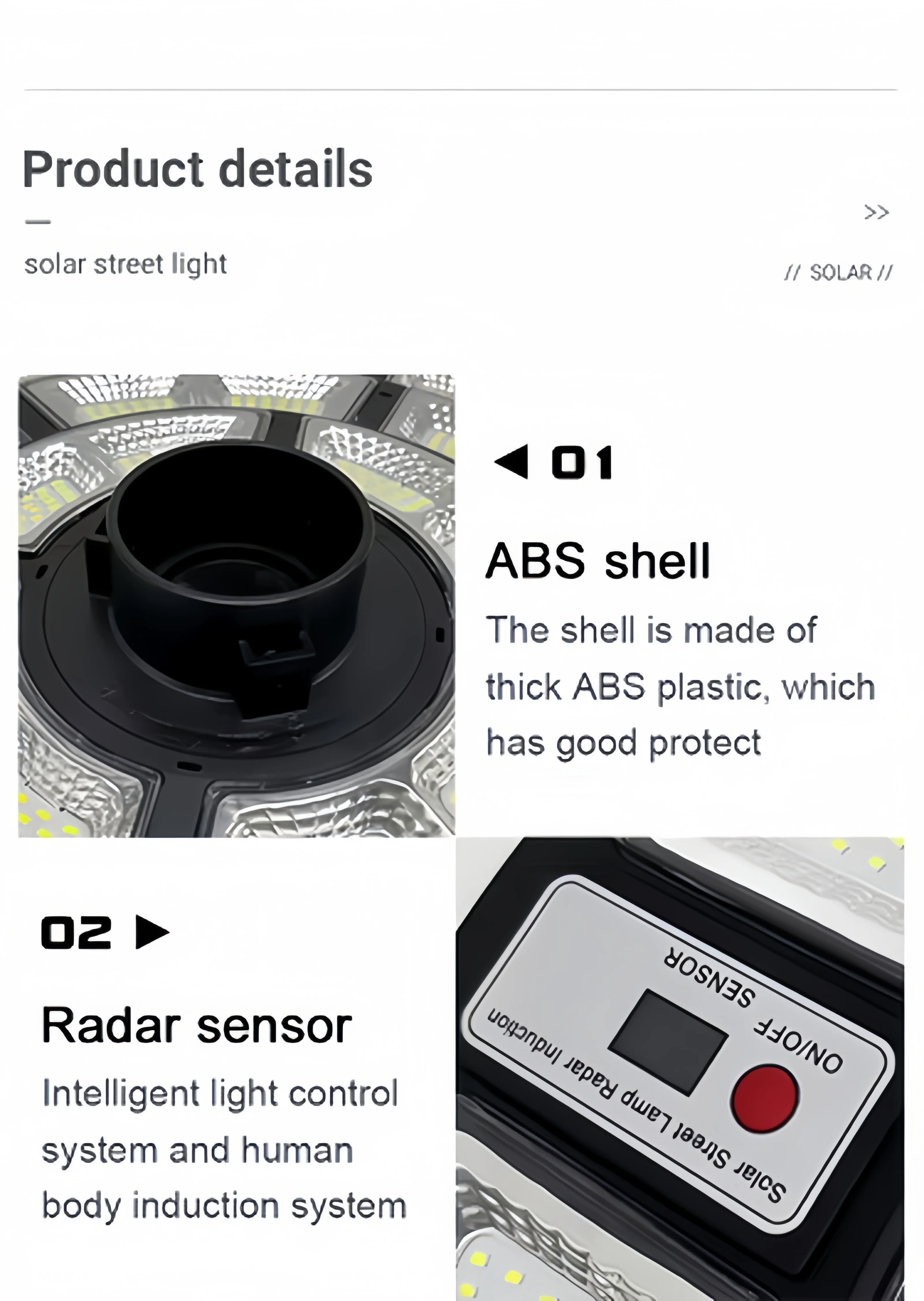 Luci di inondazione solari per esterni impermeabili 6500K con sensore di movimento e lampione solare remoto Luci di sicurezza per parcheggio