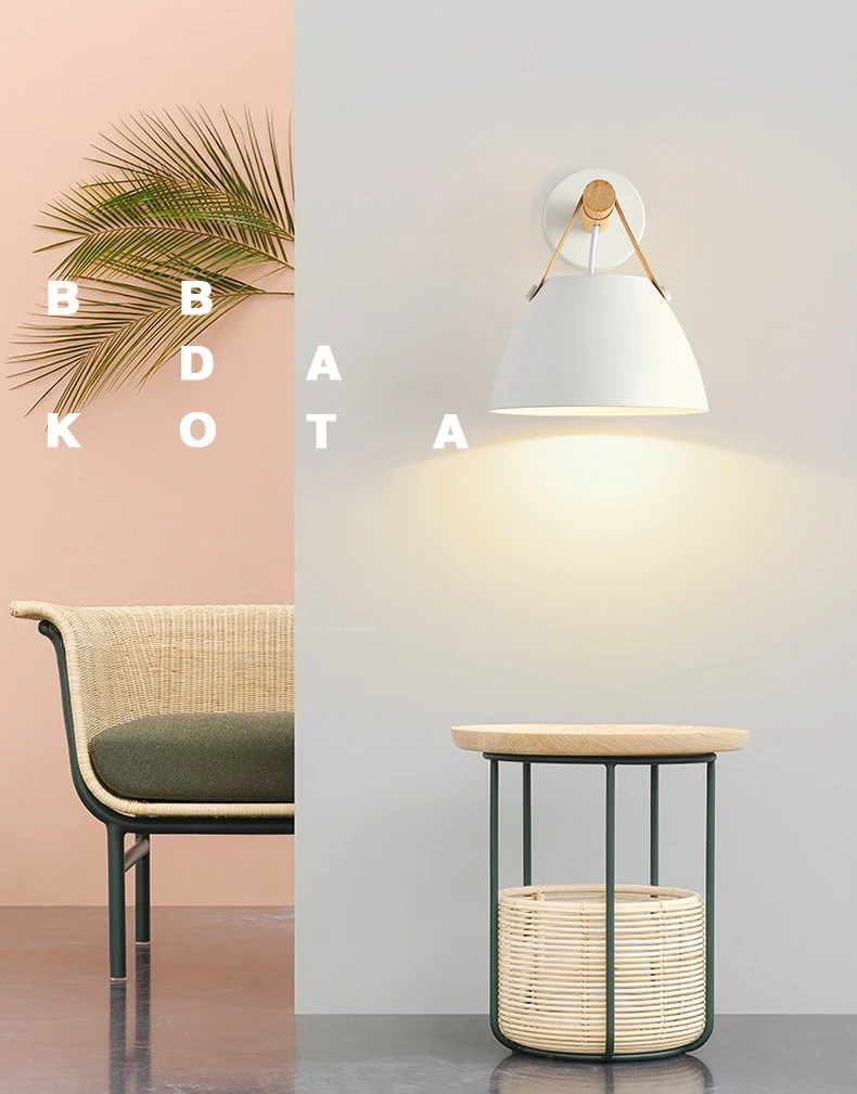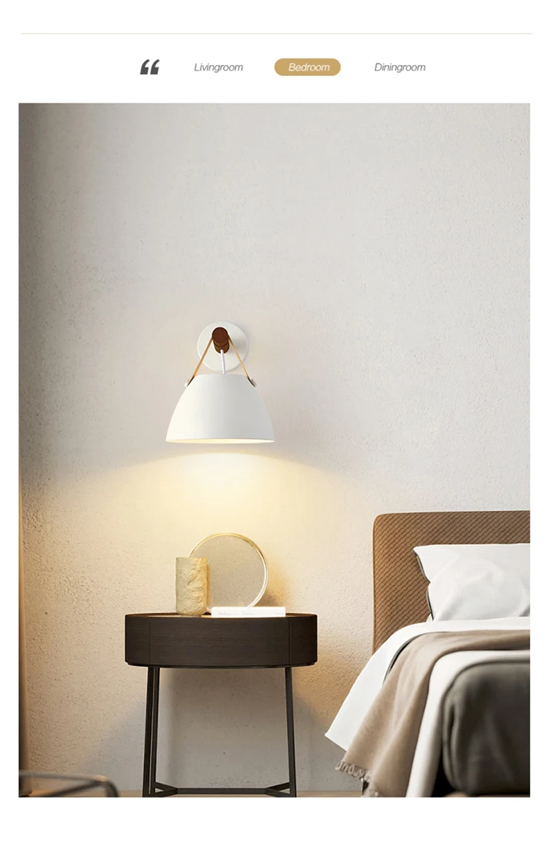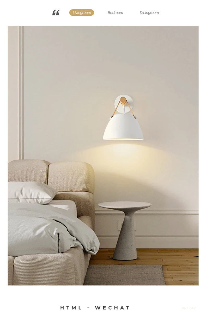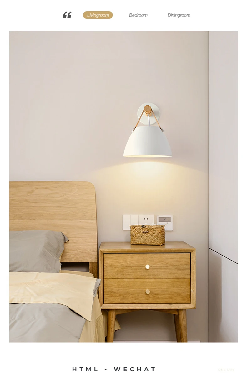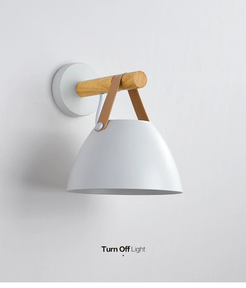 Lampada da parete a LED in legno nordico Decorazione testata da letto Lampada da parete E27 per camera da letto Soggiorno Corridoio Balcone Scala Illuminazione a sospensione bianca