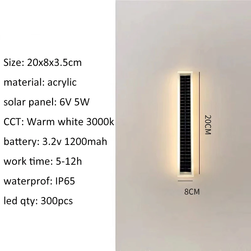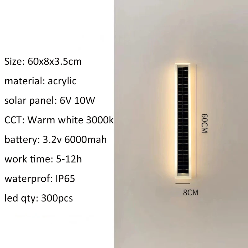 Lampada da parete a LED solare per esterni Lampada da parete lunga impermeabile IP65 da 100 cm per lampada da lavaggio per portico da giardino per cortile