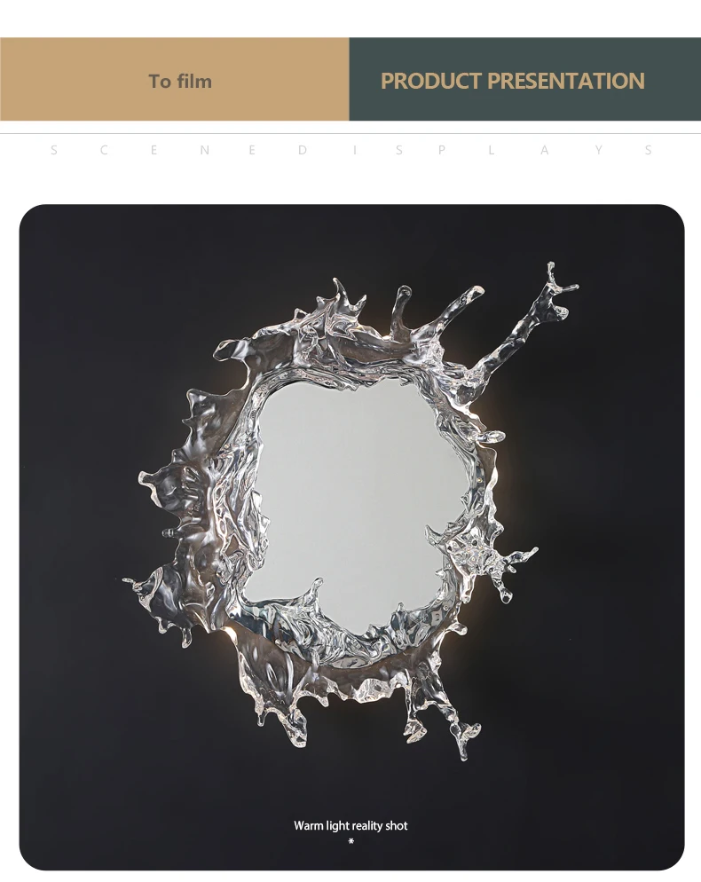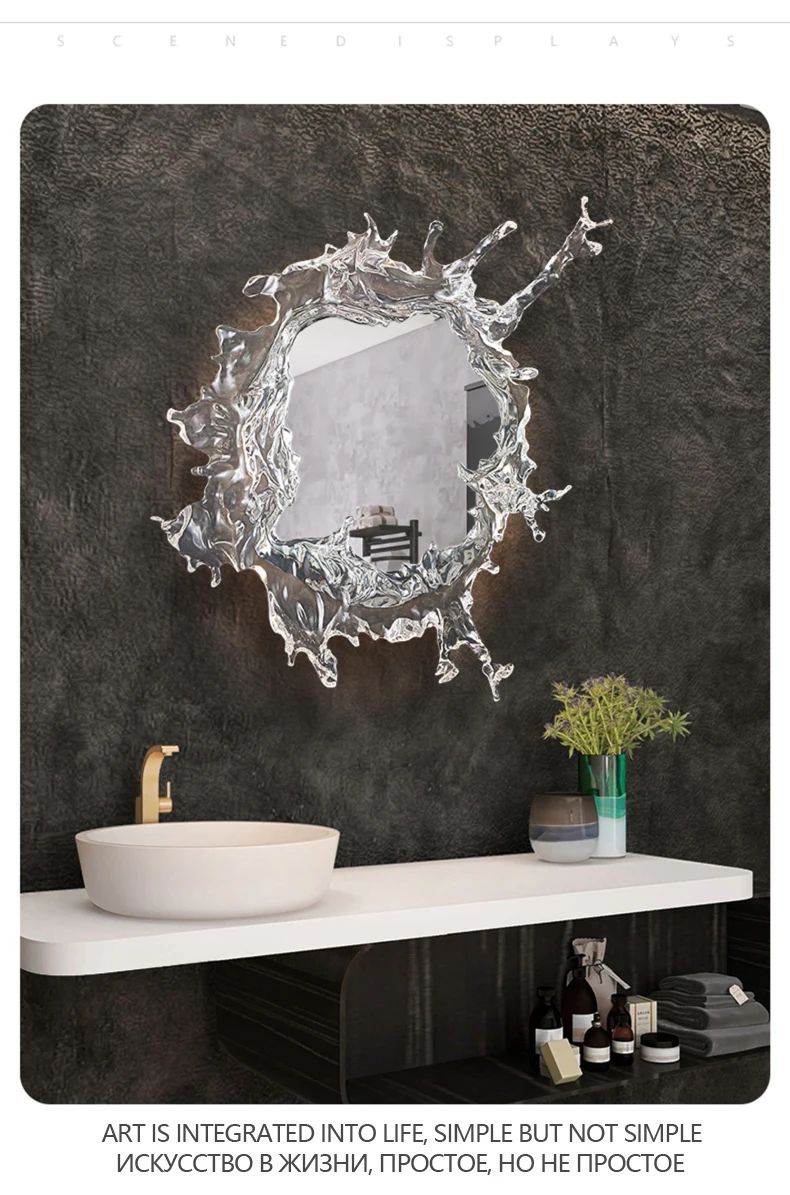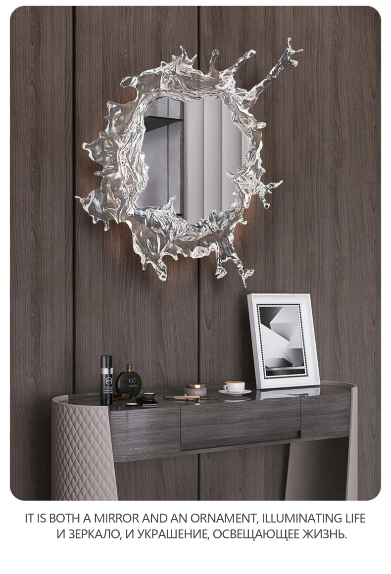 Lampada da parete a specchio artistico di design Decorazione del corridoio per soggiorno Camera da letto Specchio da toeletta con spruzzo d’acqua Illuminazione da parete Lampada Luminaria