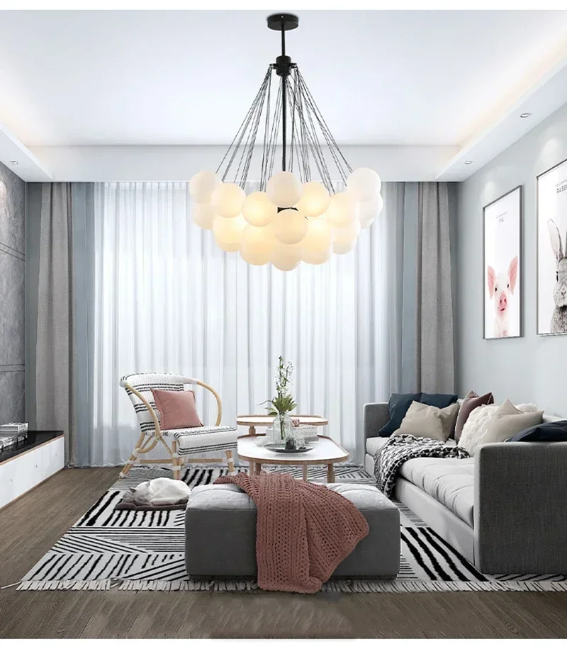 10 recensioni per Lampadari a bolle da 37 bicchieri Lampada a sospensione nordica in vetro smerigliato oro nero per la decorazione della sala da tavolo da pranzo
