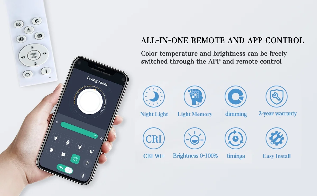 Dotato di comodo telecomando per un facile utilizzo.Il soggiorno, la camera da letto e lo studio sono tutti adatti per illuminare la vita comoda.