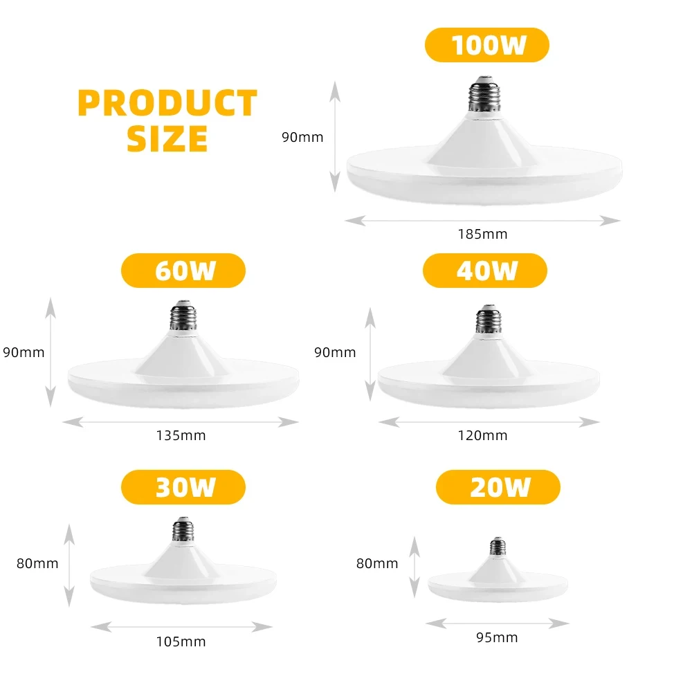 Lampadina a LED 220v E27 Base Lampada a risparmio energetico per uso domestico 20W 30W 40W 60W 100W Illuminazione per interni Disco volante Fiala luminosa E27 1Lampadina a LED 220v E27 Base Lampada a risparmio energetico per uso domestico 20W 30W 40W 60W 100W Illuminazione per interni Disco volante Fiala luminosa E27