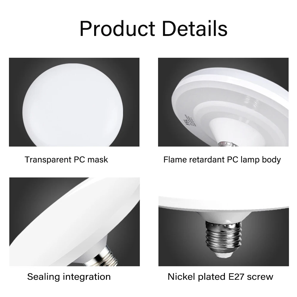 Lampadina a LED 220v E27 Base Lampada a risparmio energetico per uso domestico 20W 30W 40W 60W 100W Illuminazione per interni Disco volante Fiala luminosa E27 1Lampadina a LED 220v E27 Base Lampada a risparmio energetico per uso domestico 20W 30W 40W 60W 100W Illuminazione per interni Disco volante Fiala luminosa E27