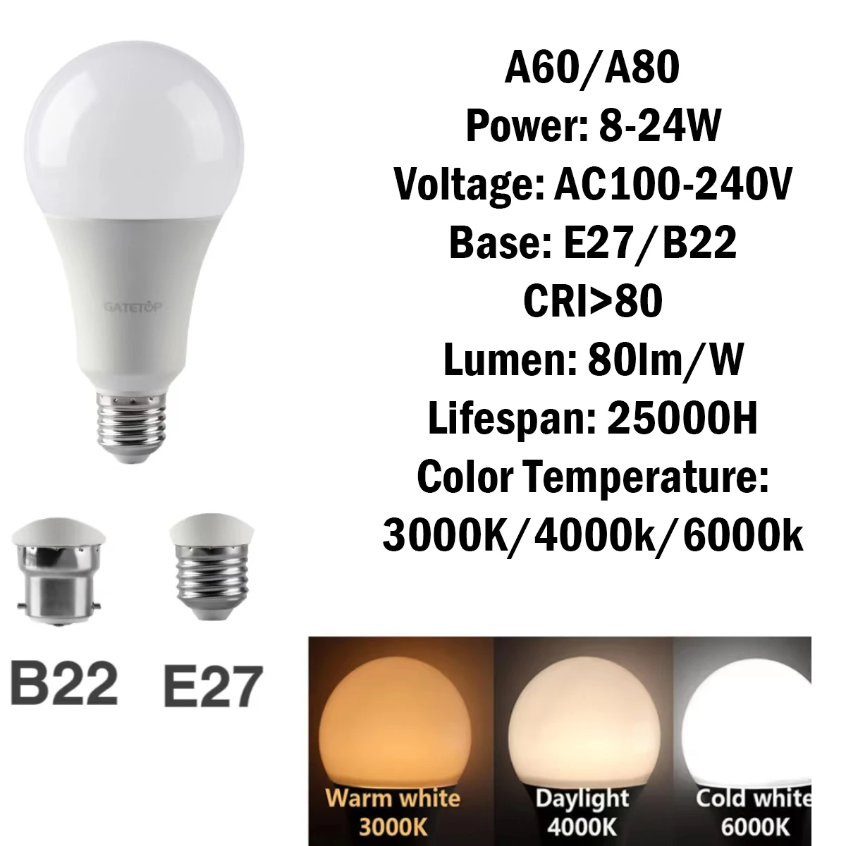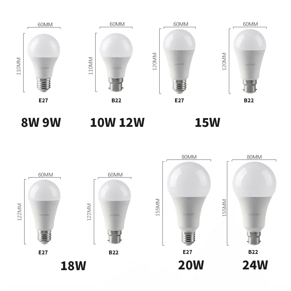Lampadina LED diretta in fabbrica AC120V/230V 8W-24W B22/E27 Alto lume senza sfarfallio Luce bianca calda per cucina, camera da letto, bagno