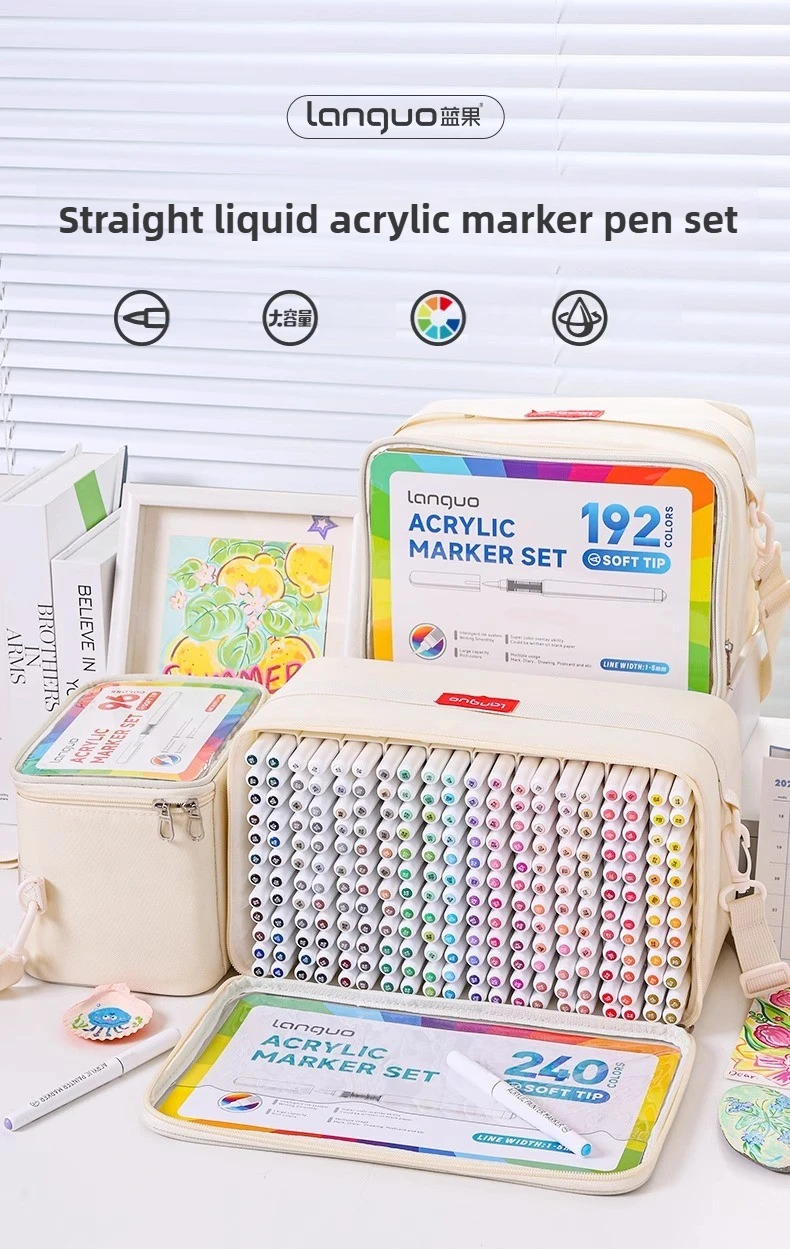 240/9 Pennarelli per pittura acrilica liquidi diretti Pennello Pennarello colorato per pittura su roccia con scatola di immagazzinaggio Materiale scolastico Cancelleria