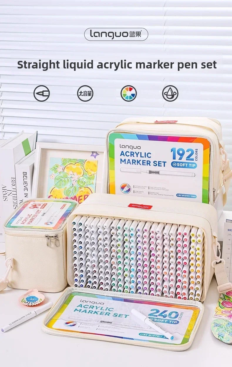 240/9 Pennarelli per pittura acrilica liquidi diretti Pennello Pennarello colorato per pittura su roccia con scatola di immagazzinaggio Materiale scolastico Cancelleria
