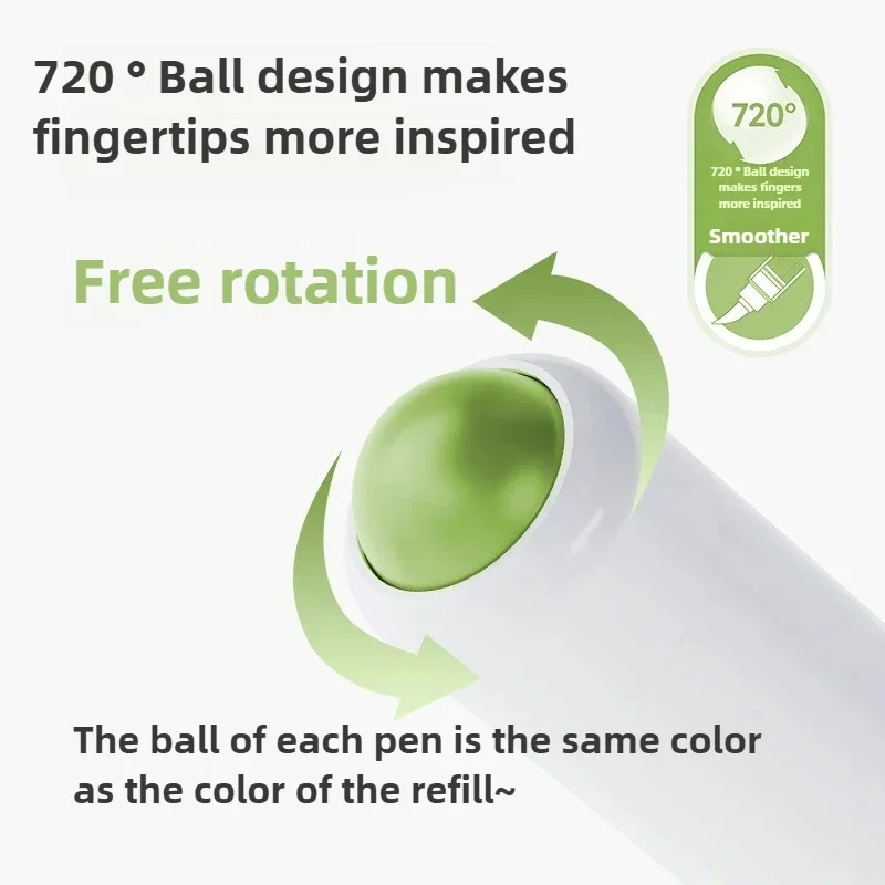 L’innovativo sistema di alimentazione liquida garantisce un’esperienza liscia come la seta, mentre i pennini ultra morbidi offrono un controllo preciso, consentendo transizioni senza interruzioni dai tratti delicati ai turbinii di colore audaci.Il design della sfera rotante sul cappuccio aggiunge un tocco giocoso, ispirando la creatività ad ogni rotazione.