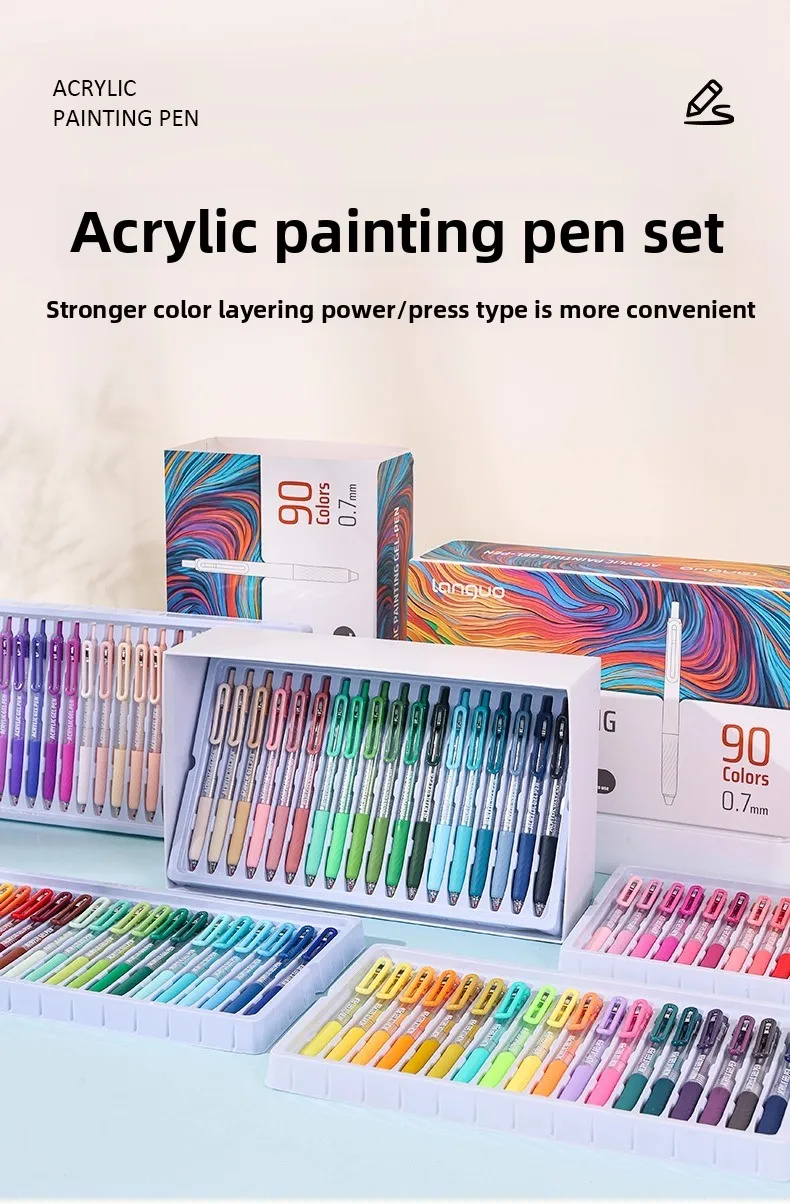 Scatena la tua creatività con le penne per diario a proiettile con pittura acrilica LANGUO!Con 90 colori vivaci, la tua creatività non conosce limiti!Dai gialli caldi e toni caldi energici ai verdi naturali e ai blues oceanici, ogni tavolozza di colori è meticolosamente realizzata per accendere il tuo spirito artistico.