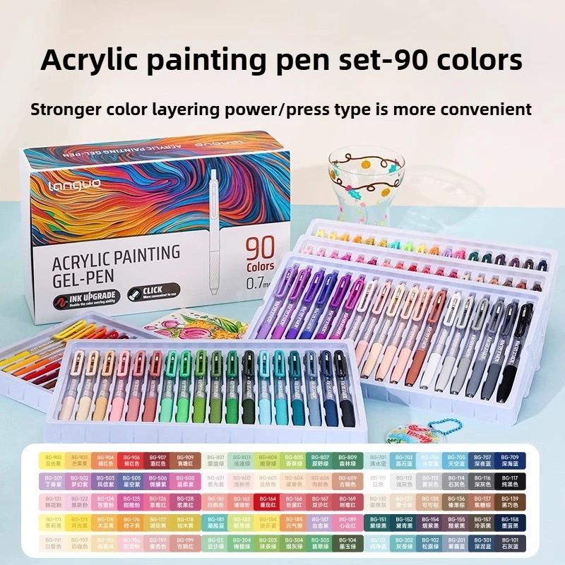 Scatena la tua creatività con le penne per diario a proiettile con pittura acrilica LANGUO!Con 90 colori vivaci, la tua creatività non conosce limiti!Dai gialli caldi e toni caldi energici ai verdi naturali e ai blues oceanici, ogni tavolozza di colori è meticolosamente realizzata per accendere il tuo spirito artistico.