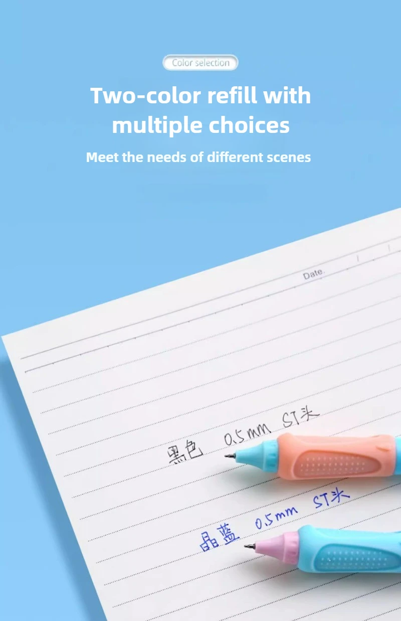 Ciò che è ancora più sorprendente è che questa penna offre due opzioni di colore di ricarica, nero e ciano, che soddisfano le tue esigenze di scrittura in vari scenari.Che si tratti di studio quotidiano, documenti d’ufficio o disegni creativi, puoi trovare il colore più adatto.