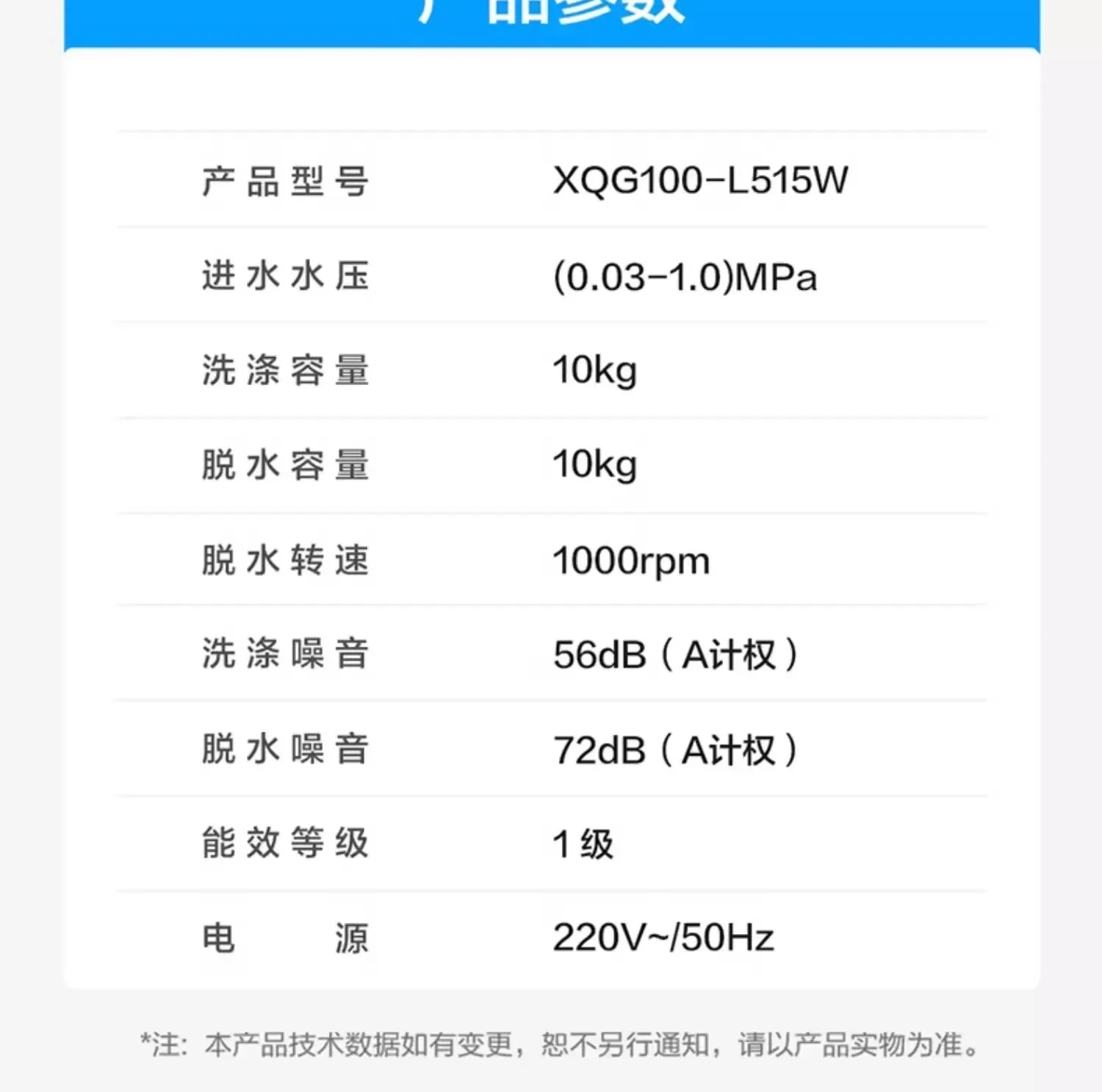 | Model | XQG100-L515W |