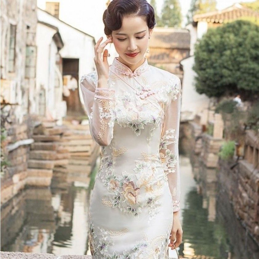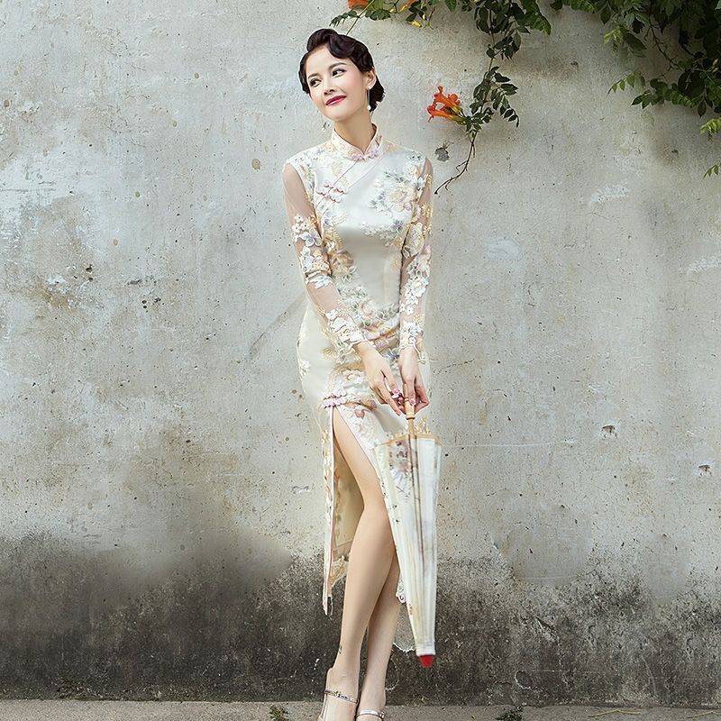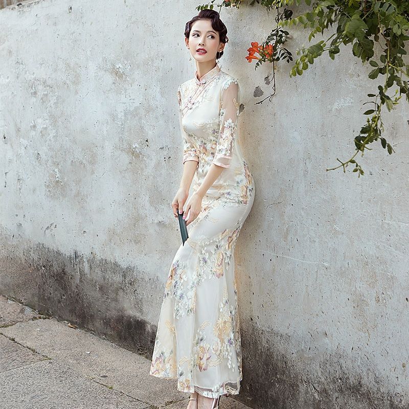 Le donne del partito vestono il banchetto elegante di stile della cina di lusso lungo Qipao orientale femminile matrimonio sottile Prom abiti da Cheongsam Vestido S-4XL