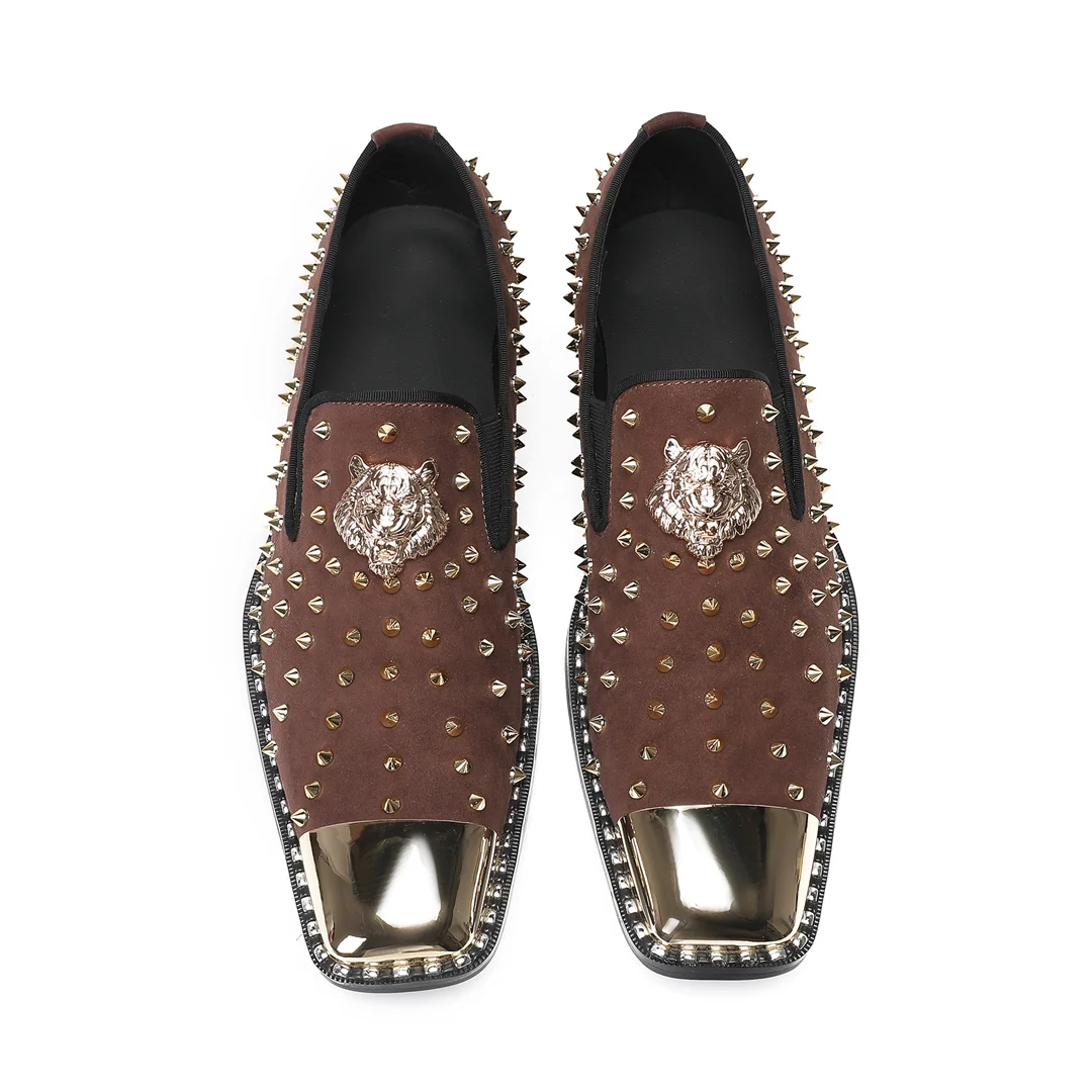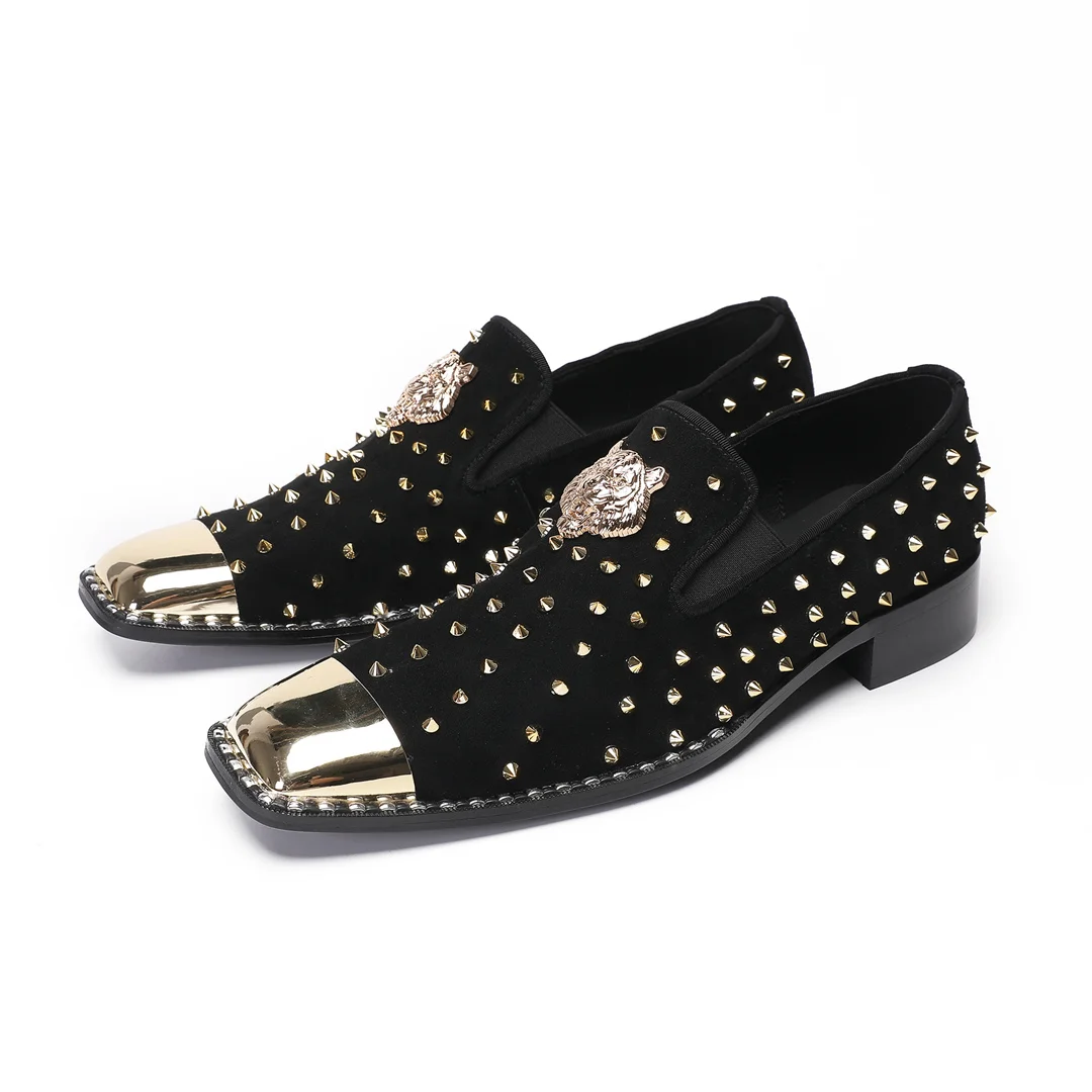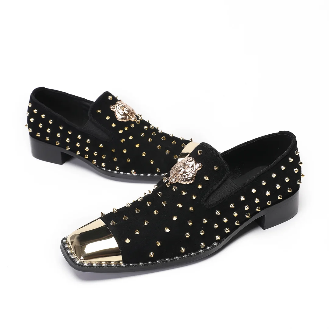 Le scarpe da uomo decorative con testa in metallo con rivetti sono scarpe formali di lusso per feste casual, durevoli e traspiranti