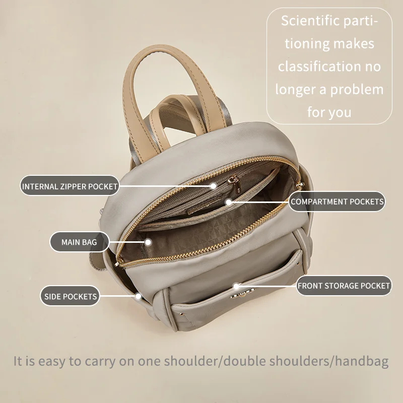 LEFF Zaino piccolo da donna alla moda Designer classico Zaini da viaggio impermeabili in nylon da esterno Tinta unita Nuove borse casual femminili