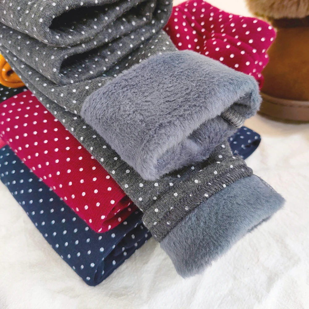 Leggings con stampa a pois in cotone per ragazze Autunno Inverno Pantaloni caldi in pile per bambini Neonata Slim Plus Pantaloni addensati Vestiti per bambini