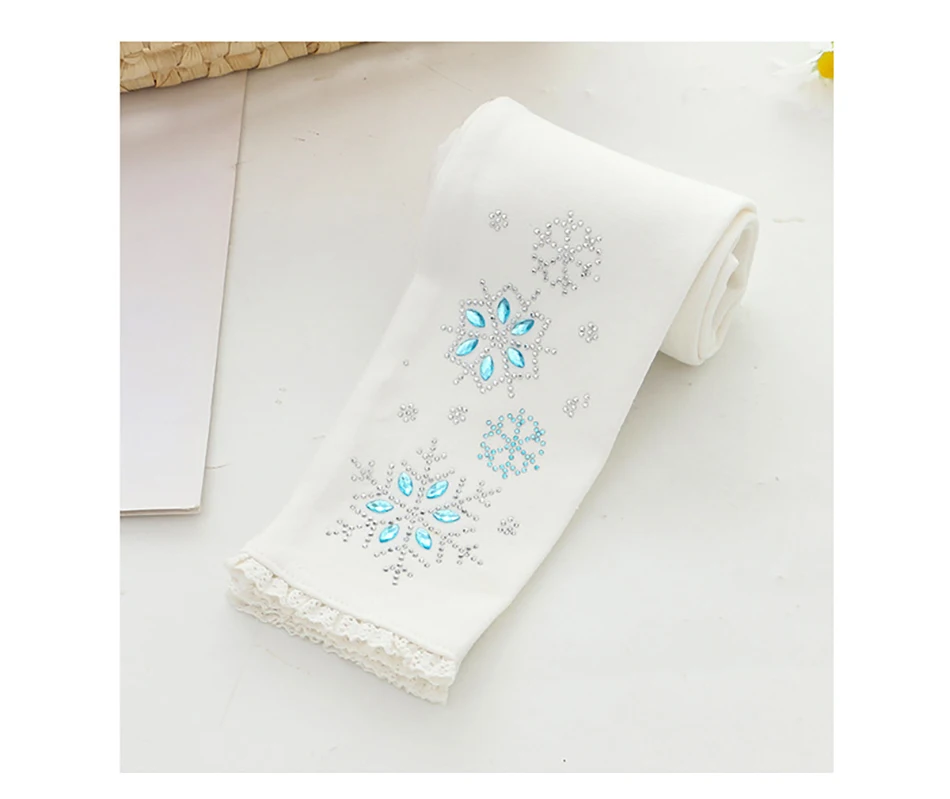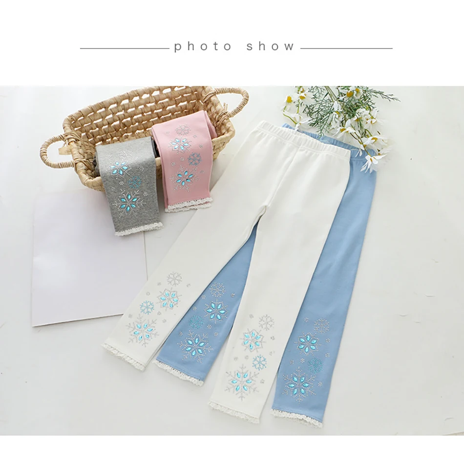Nome: Leggings per ragazze carini e confortevoli Abbigliamento quotidiano per bambini Leggings casual primaverili e autunnali con fiocchi di neve glitterati e strass