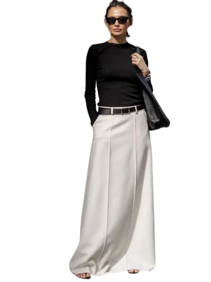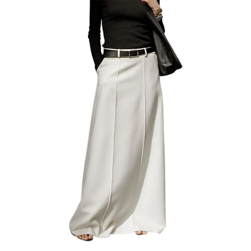 Lemongor Gonne a trapezio a vita alta di colore bianco nero da donna 2025 Nuova gonna lunga da pendolare per ufficio casual urbano moda primaverile 1Lemongor Gonne a trapezio a vita alta di colore bianco nero da donna 2025 Nuova gonna lunga da pendolare per ufficio casual urbano moda primaverile
