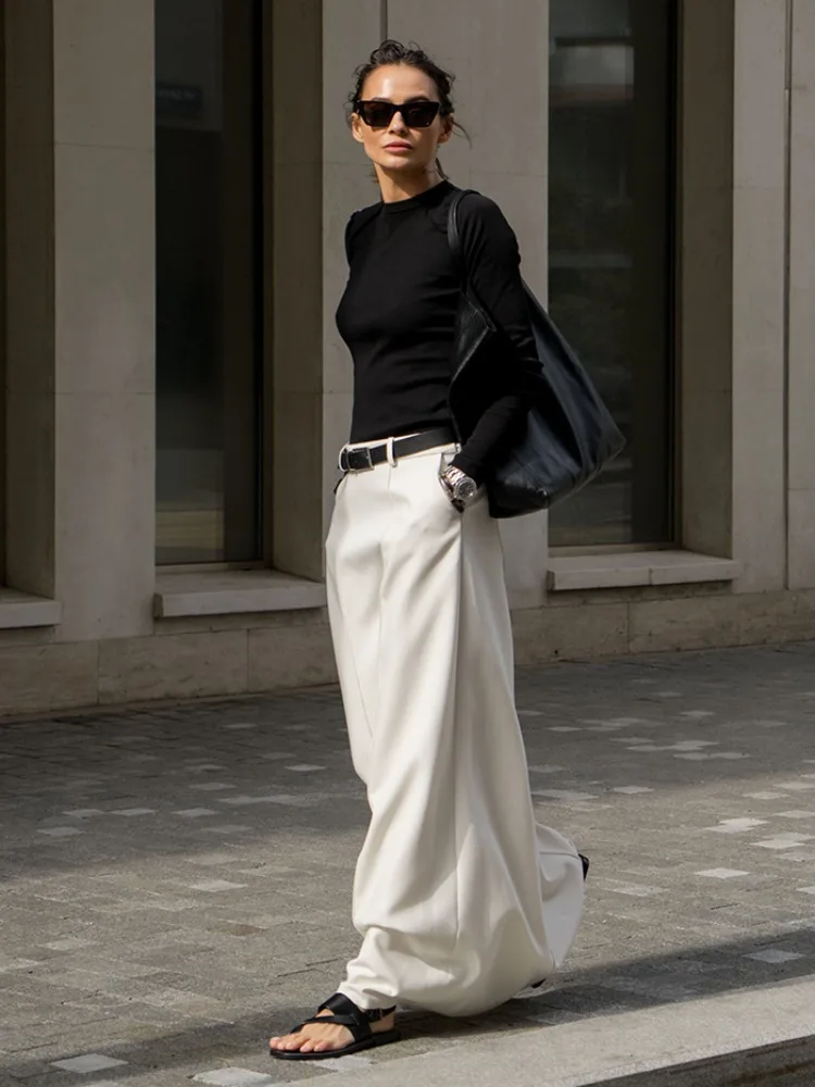 Lemongor Gonne a trapezio a vita alta di colore bianco nero da donna 2025 Nuova gonna lunga da pendolare per ufficio casual urbano moda primaverile 1Lemongor Gonne a trapezio a vita alta di colore bianco nero da donna 2025 Nuova gonna lunga da pendolare per ufficio casual urbano moda primaverile