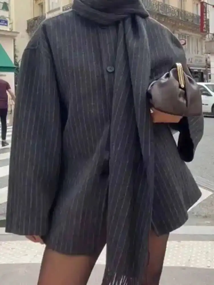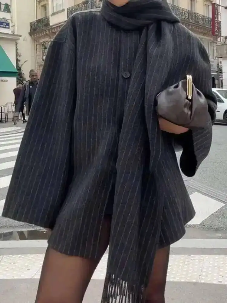 LGRQ 2024 inverno nuove donne di moda vestiti sciarpa a righe monopetto giacca corta di lana femminile top WQ 1002802 1LGRQ 2024 inverno nuove donne di moda vestiti sciarpa a righe monopetto giacca corta di lana femminile top WQ 1002802