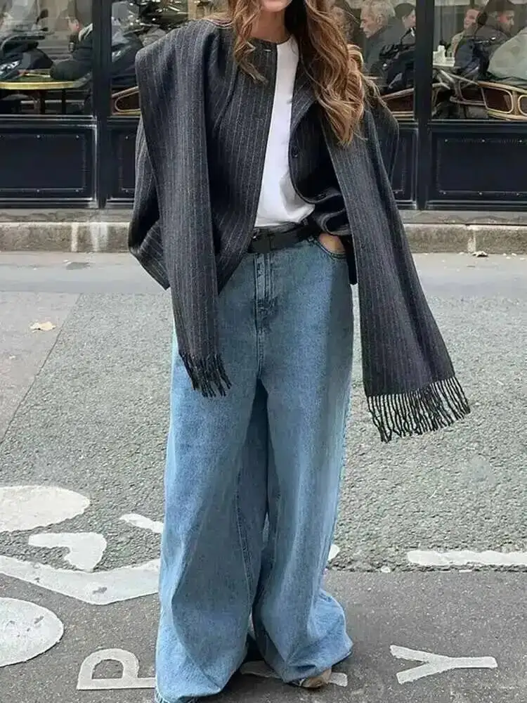 LGRQ 2024 inverno nuove donne di moda vestiti sciarpa a righe monopetto giacca corta di lana femminile top WQ 1002802