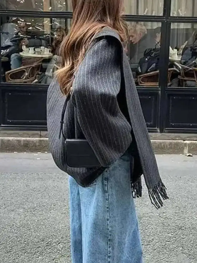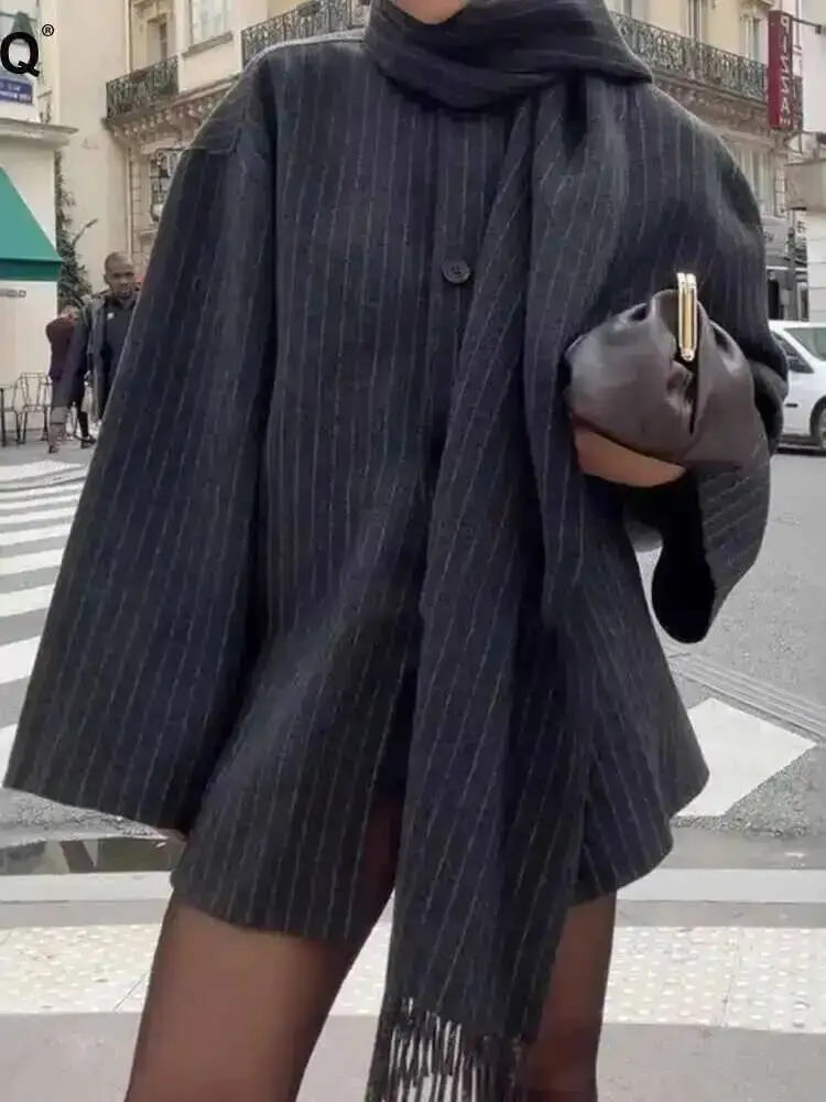 LGRQ 2024 inverno nuove donne di moda vestiti sciarpa a righe monopetto giacca corta di lana femminile top WQ 1002802 1LGRQ 2024 inverno nuove donne di moda vestiti sciarpa a righe monopetto giacca corta di lana femminile top WQ 1002802
