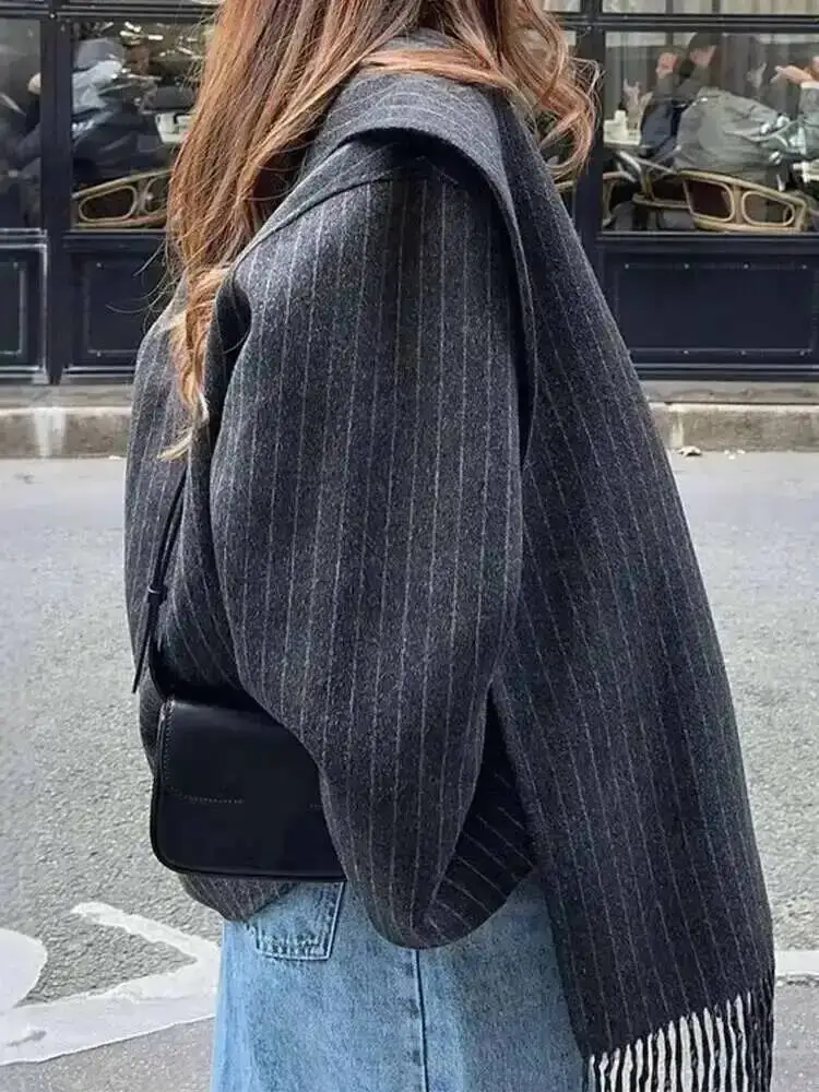 LGRQ 2024 inverno nuove donne di moda vestiti sciarpa a righe monopetto giacca corta di lana femminile top WQ 1002802